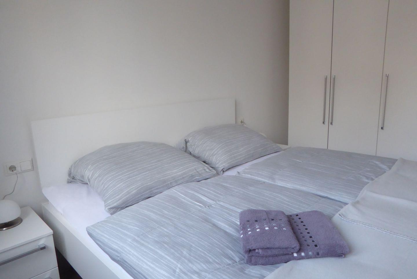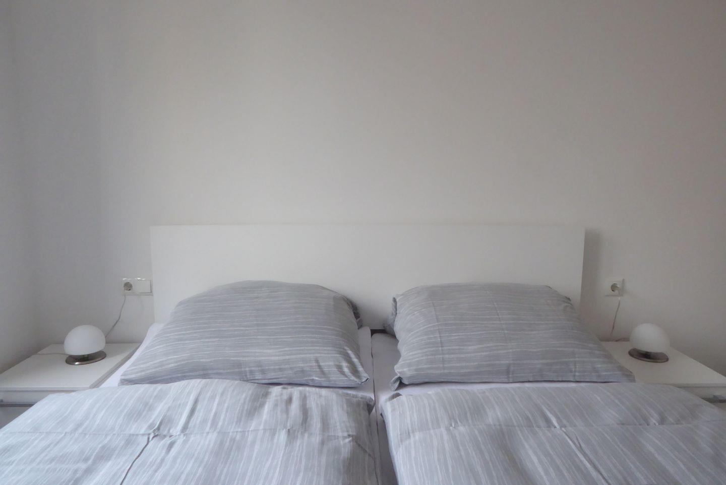 Schlafzimmer 1: Doppelbett (Maße: 180 x 200 cm) mit 2 Einzelmatratzen, Nachttische, Leselampen, Kleiderschrank