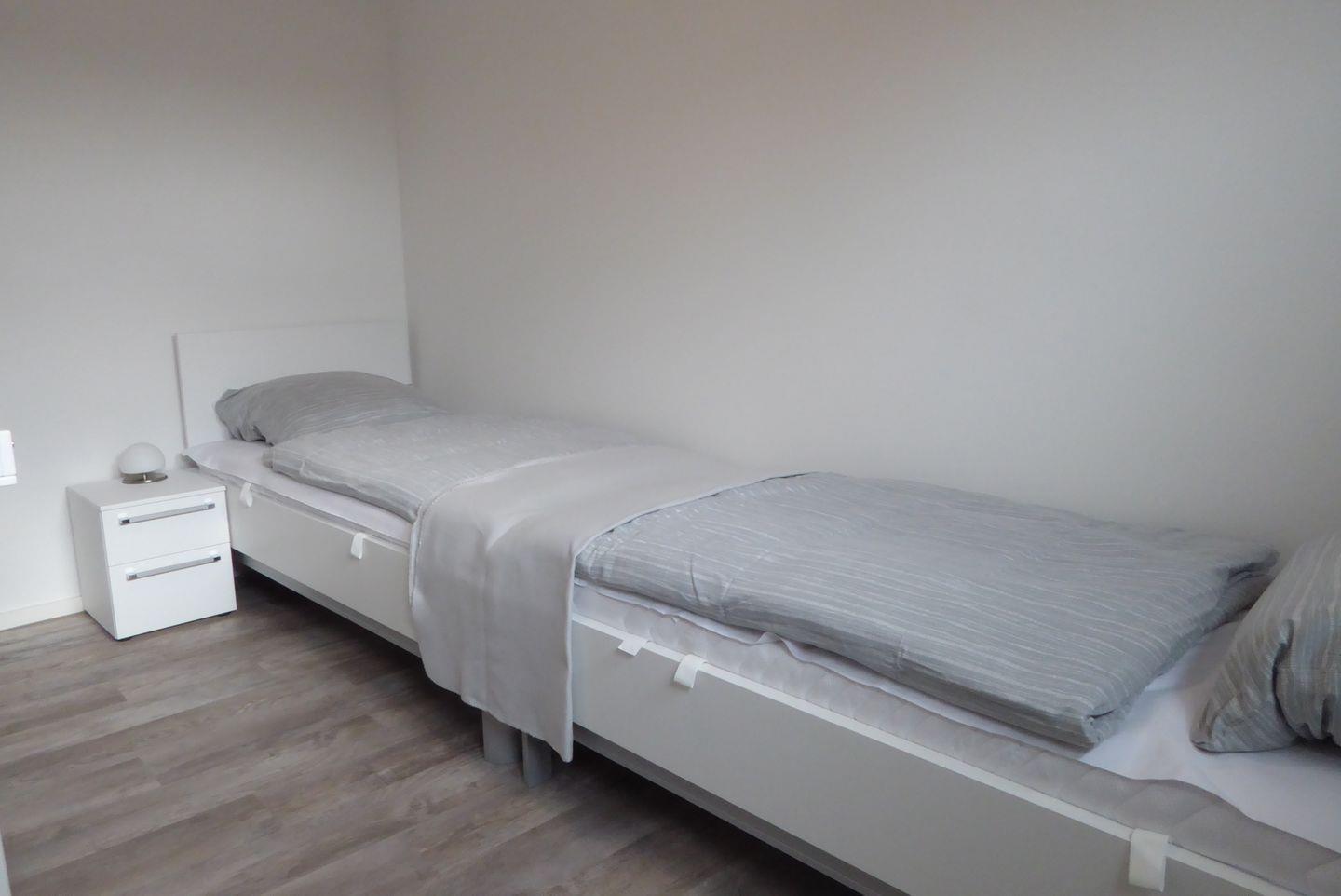 Schlafzimmer 2: 2 x Einzelbett (Maße: 90 x 200 cm), Babybett, Wickelkommode, Nachttische, Leselampen