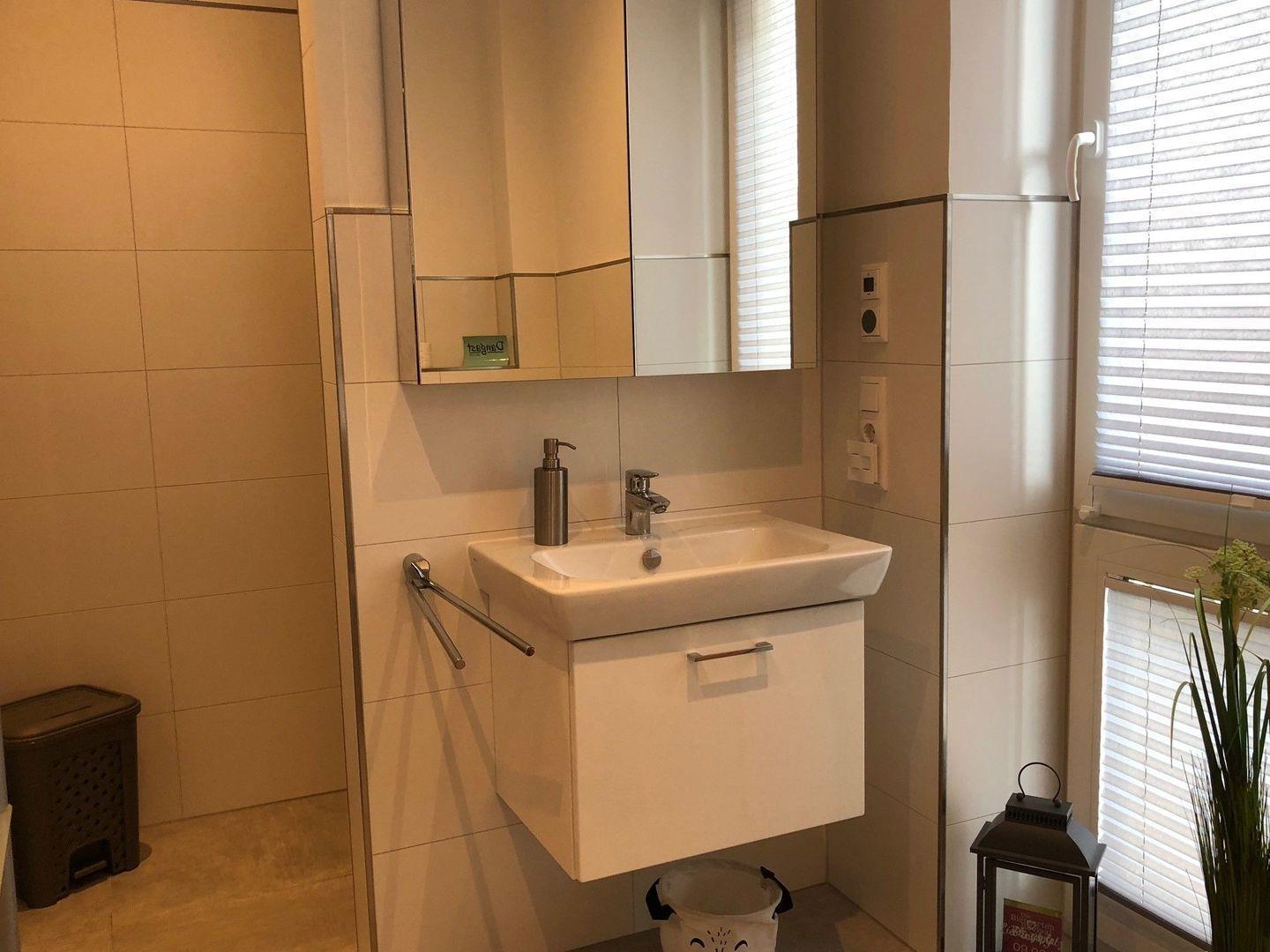 Das Badezimmer ist modern gestaltet und verfügt über eine Dusche, ein WC sowie ein Waschbecken. Für zusätzlichen Komfort sind ein Haartrockner und Geschirrhandtücher vorhanden. Sie können sich auf warmes Wasser und eine angenehme Raumtemperatur freuen, da die Unterkunft mit einer Heizung ausgestattet ist.
