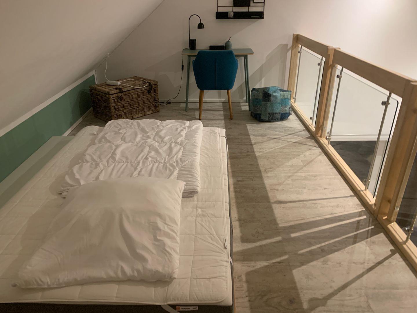 Die Wohnung verfügt über 1 Schlafzimmer im unteren Bereich und den Maisonette Bereich in der oberen Etage, dort können 1-2 KINDER oder 1 Erwachsener (Matratze 1,40m breit) übernachten.