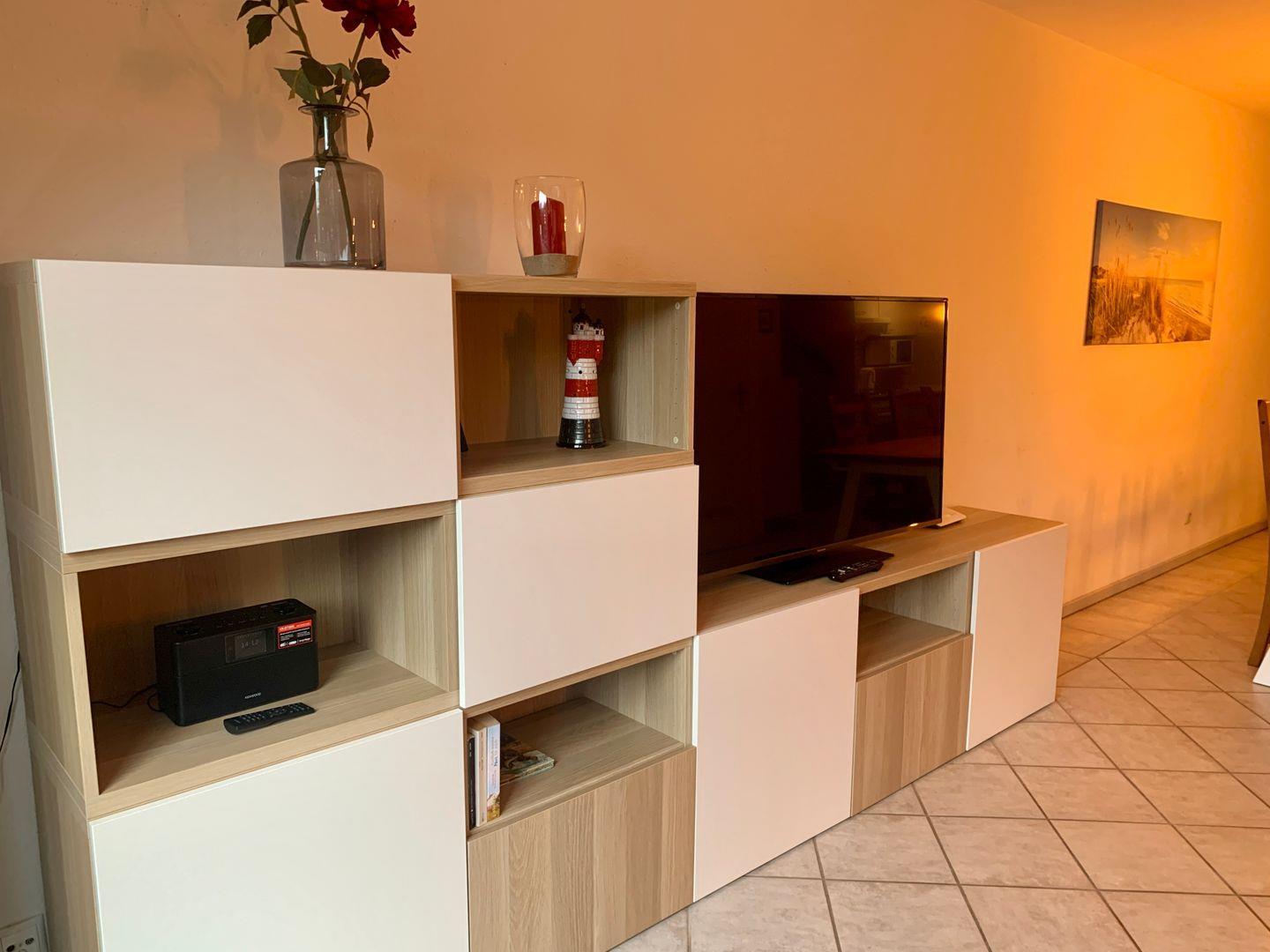 Das Große Freiheit Ferienhaus in Dangast bietet auf 100 m² Platz für bis zu 6 Gäste in 3 Schlafzimmern. Die moderne Unterkunft verfügt über eine offene Küche, ein gemütliches Wohnzimmer mit Sofaecke und drei Fernsehern, ideal für Familien und Freunde.
