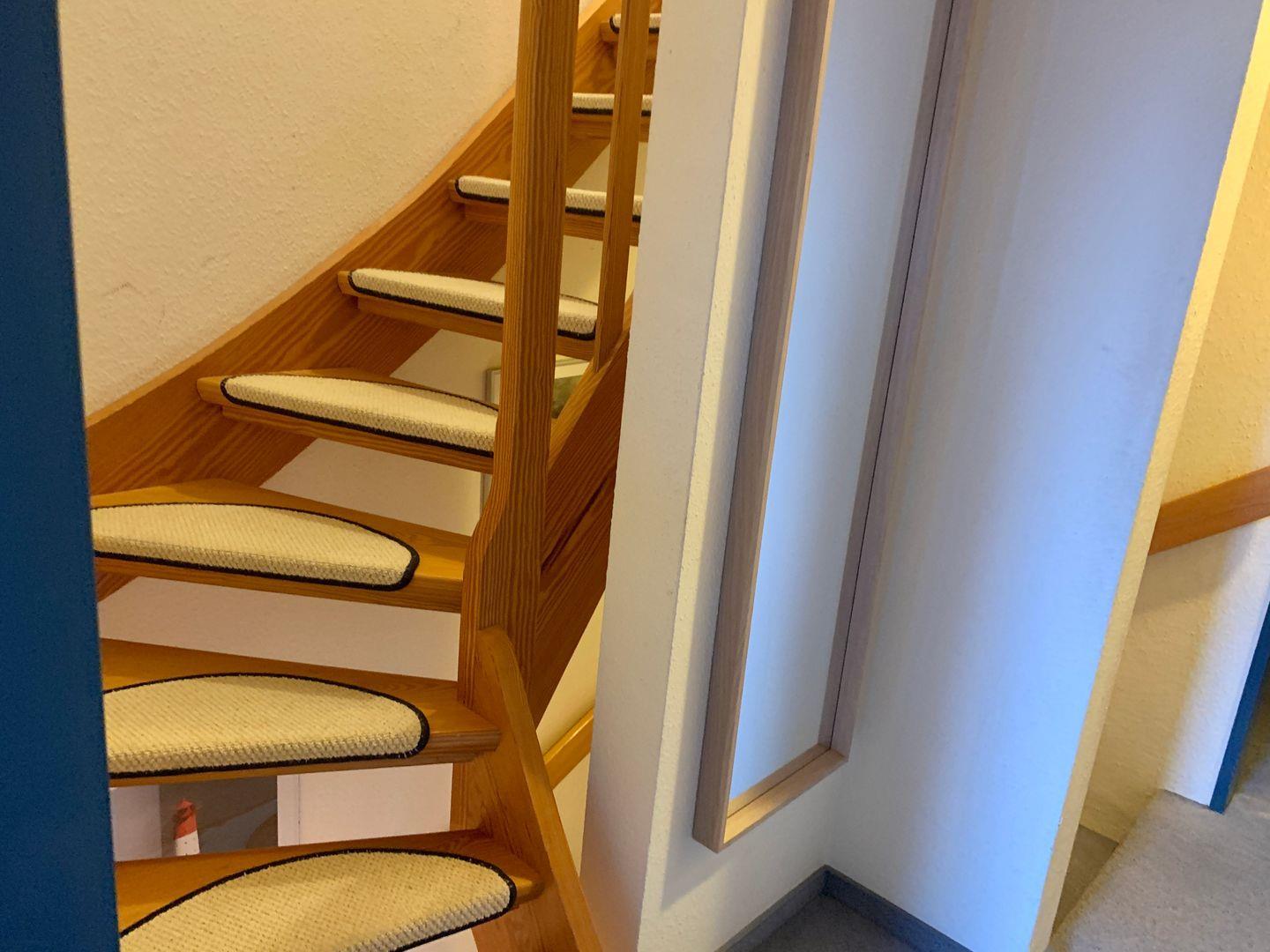 Per Treppe gelangt man vom Wohnraum in das Obergeschoss, in dem sich 2 Schlafzimmer und das Badezimmer befinden.