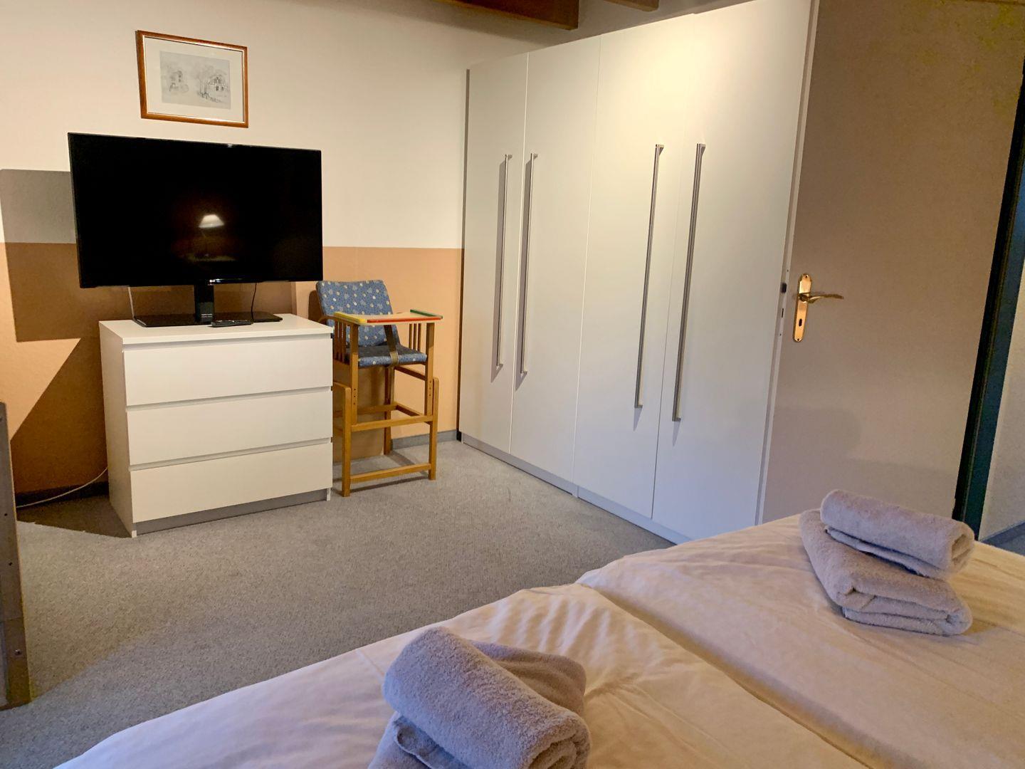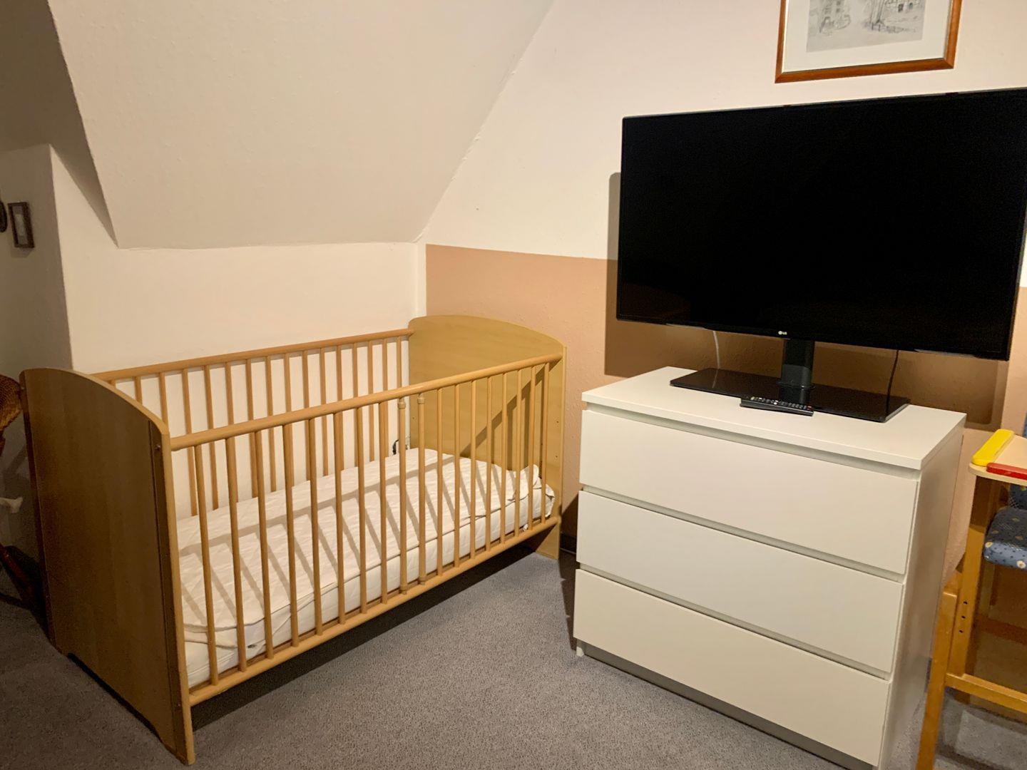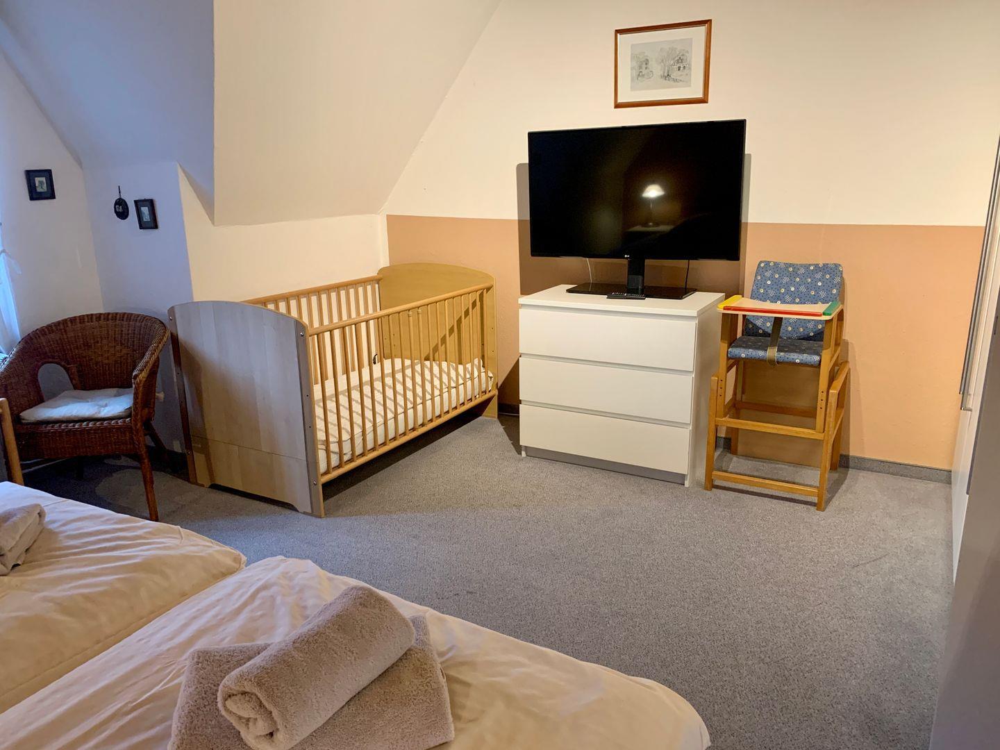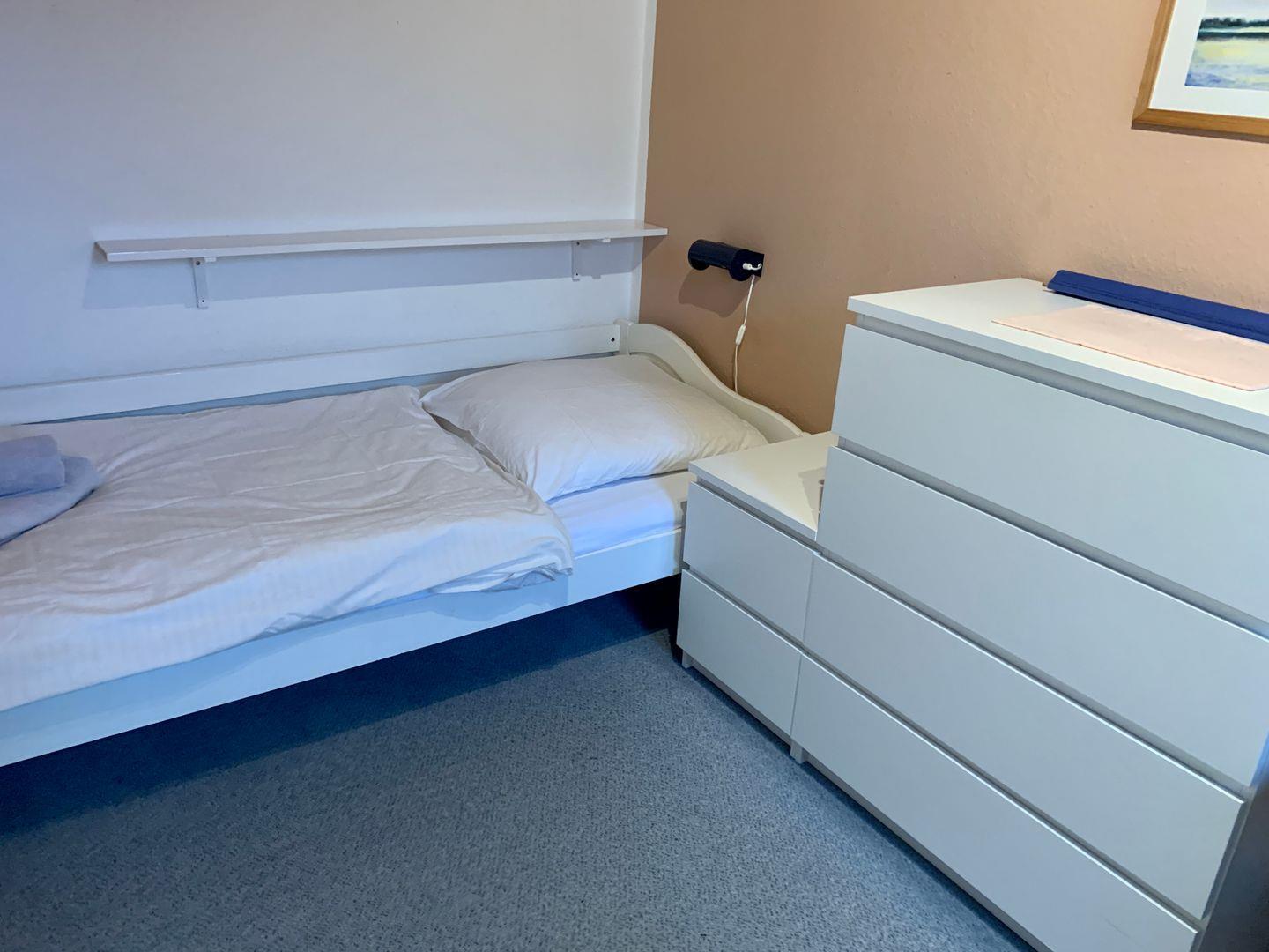 Die Schlafzimmer teilen sich auf 1 Schlafzimmer mit Doppelbett (separaten Kinderbett aus Holz) und ein Schlafzimmer mit 1 Einzelbett plus 1 Schlafsofa für 1 Person.