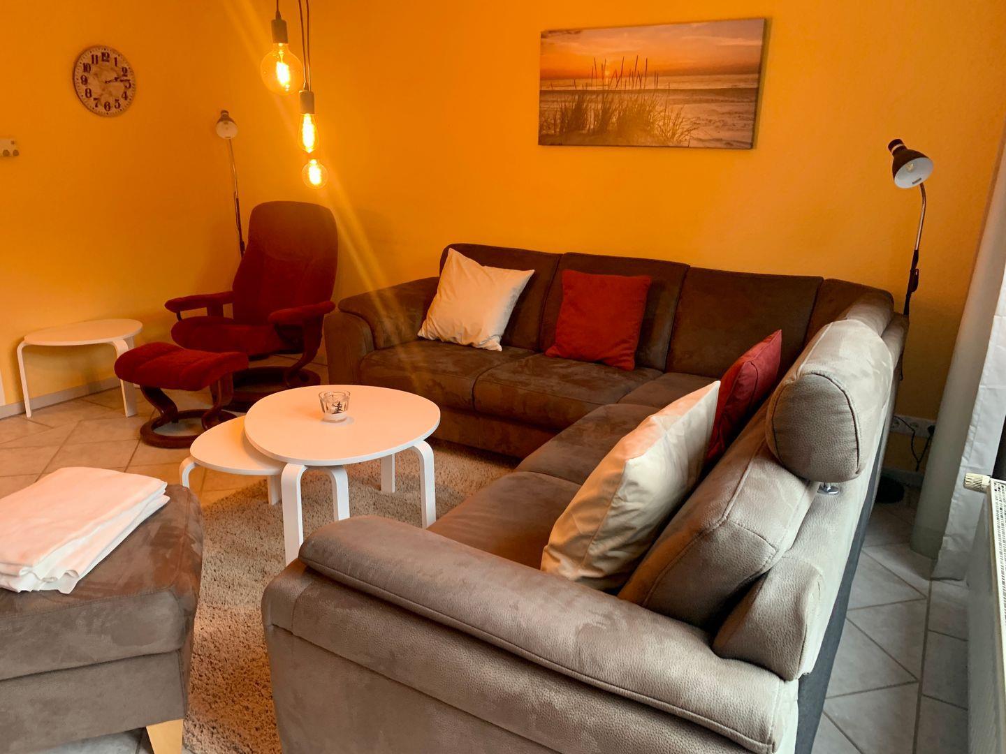 Von dem kleinen Eingangsflur, mit Tür zum Gäste-WC, geht es direkt in den gemütlichen, offen gestalteten Wohnraum.