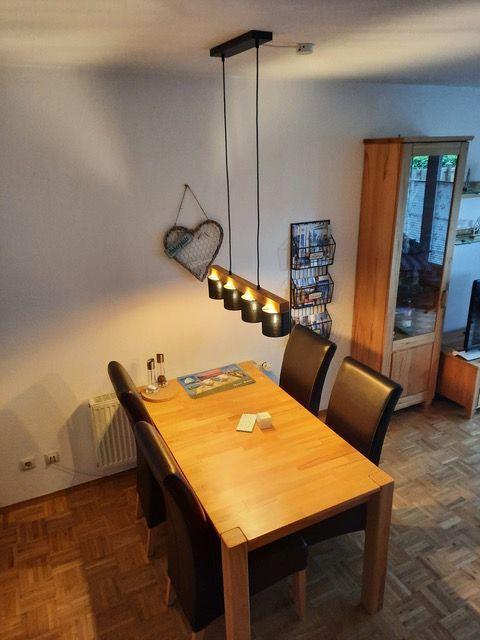 Es erwartet Sie der Eingangsbereich mit Gäste-WC und Garderobe, der Zugang zum großzügigen Wohn-und Essbereich mit einem TV und Blick auf die großzügige Terrasse mit elektrischer Markise. Eine Einbauküche mit allen notwendigsten Utensilien laden zum Kochen ein, ob ein Toast am Morgen und den leckeren Kaffee aus der Filterkaffemaschine oder die Pasta mittags.