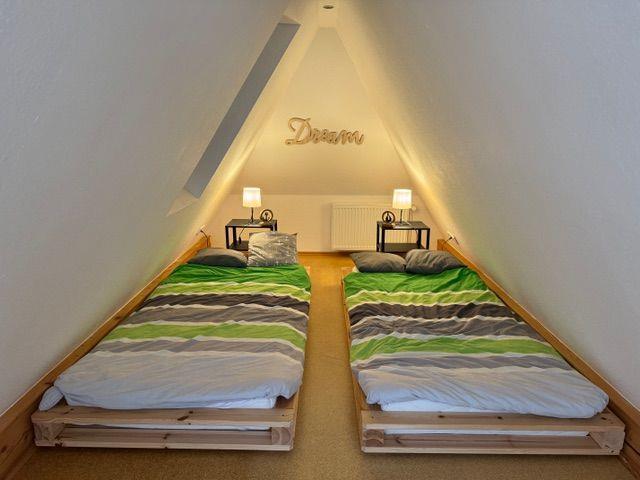 Im DG über eine fest installierte Holztreppe erreichen Sie die ausgebaute Dachgalerie mit 1 Einzelbett.