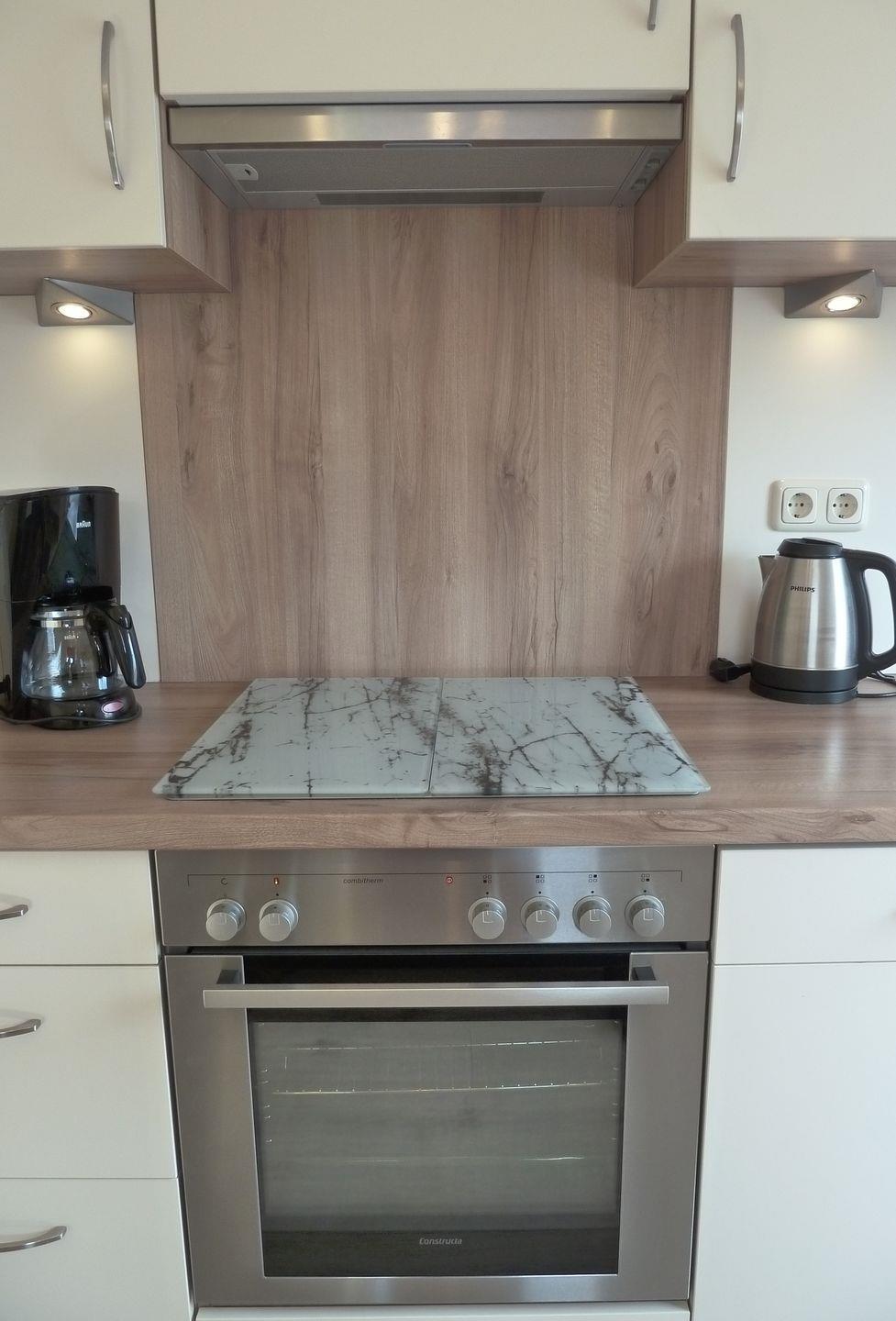 In der Küche befindet sich eine Einbauküche mit Herd, Dunstabzugshaube, Kühlschrank und Geschirrspüler. An Kleingeräten gehören natürlich auch eine Mikrowelle, Kaffeemaschine, Toaster und Wasserkocher zur Ausstattung. Das Geschirr und Besteck ist großzügig ausgelegt, damit auch der Geschirrspüler voll wird. Von der Küche gehen Sie direkt auf den Balkon.