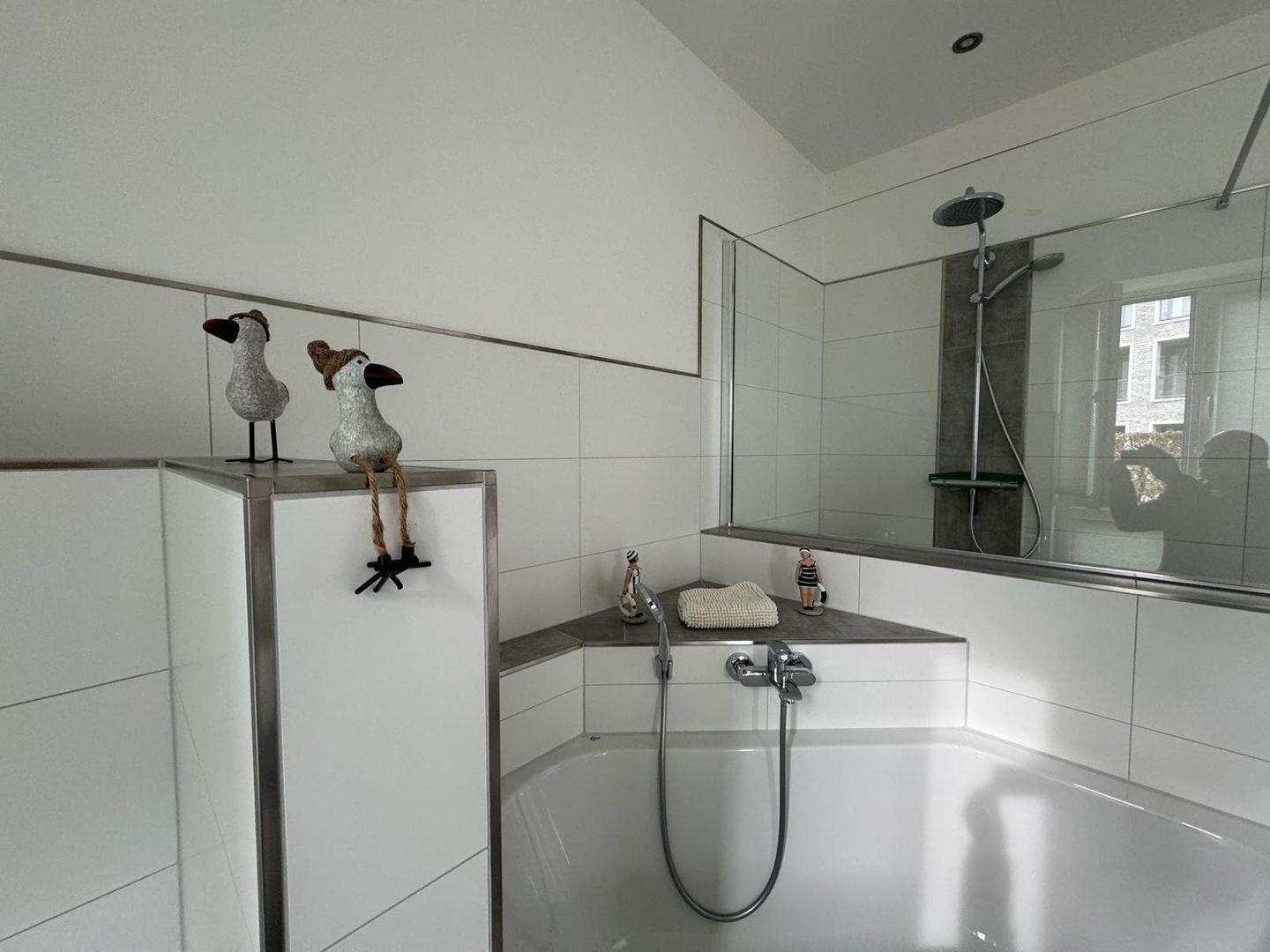 Ein exklusives barrierefreundliches großes Badezimmer mit begehbarer Dusche (Regendusche) und Badewanne wird Sie ebenfalls begeistern.