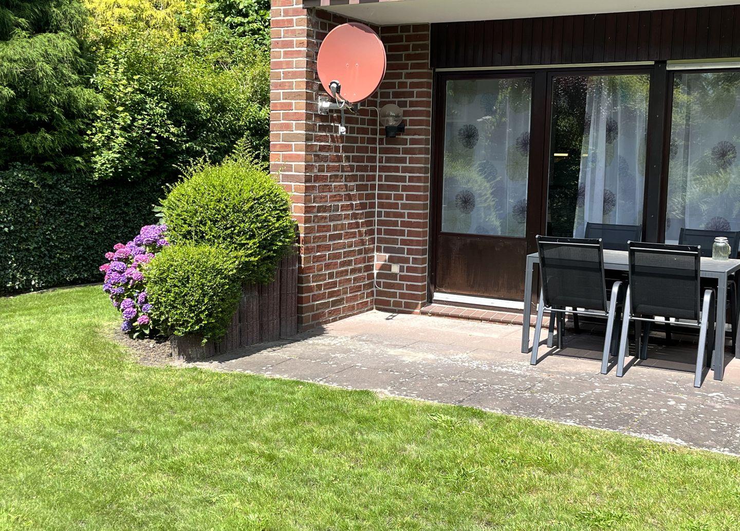 Das Apartment befindet sich im Erdgeschoss mit einer offenen Terrasse. Alle Zimmer sind mit Rolläden abzudunkeln.