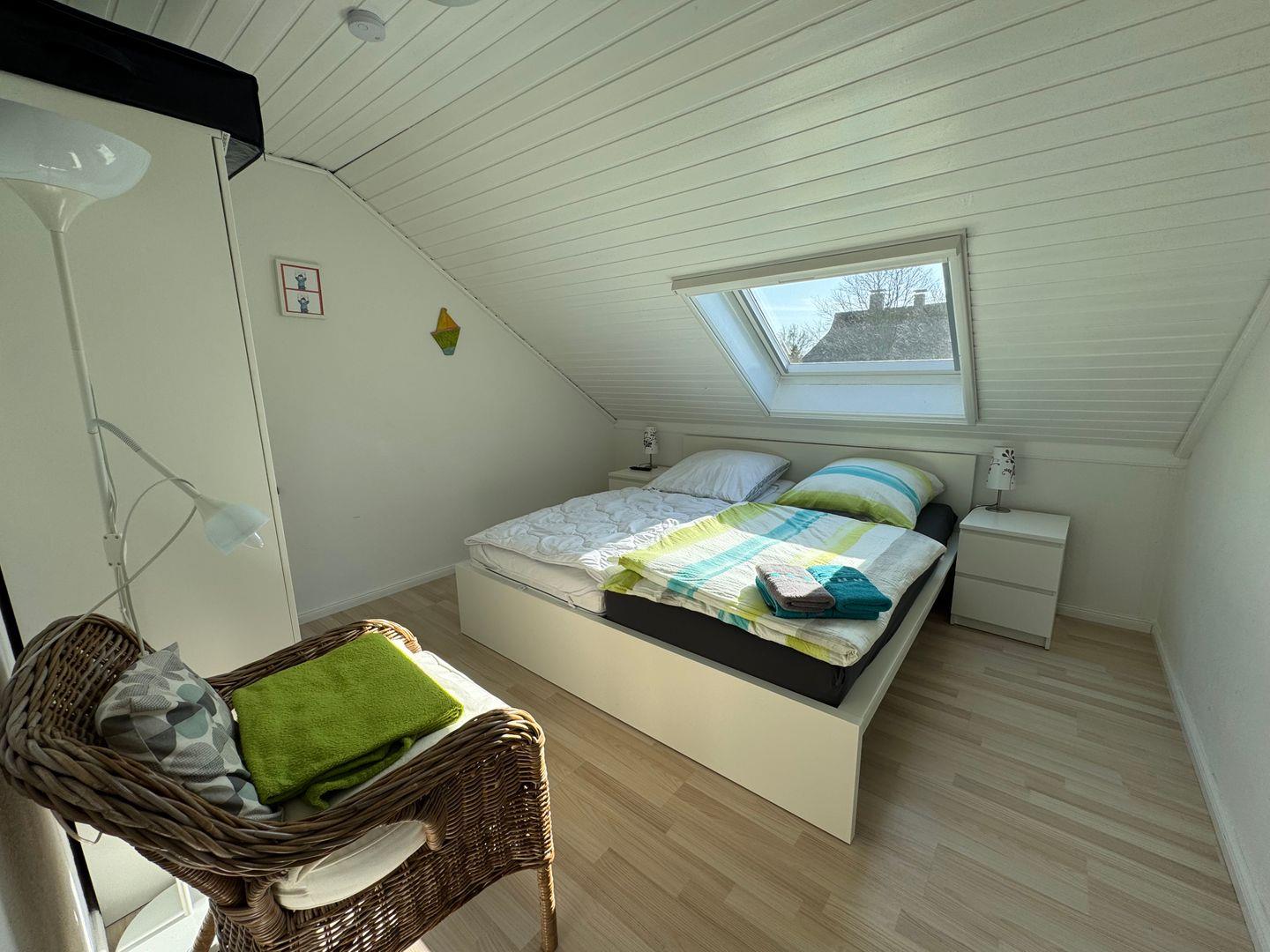Das Ferienhaus beherbergt zwei separate Schlafzimmer jeweils mit einem Smart-TV ausgestattet, sowie ein Badezimmer mit Dusche, Fenster und warmem Wasser. Hier sorgen Haartrockner, Waschtisch und Spiegel für weiteren Komfort. Der offen gestaltete Wohnbereich umfasst eine bequeme Sofaecke mit Smart-TV und Radio, einen Essbereich mit Esstisch und ist mit einer Garderobe sowie einer Kommode und zusätzlicher Stauraummöglichkeit ausgestattet. Für bessere Funktionalität und idealen Tagesablauf besteht die Möglichkeit, eine eigene Waschmaschine, sowie nützliche Ausstattungsdetails wie Bügelbrett, Wäscheständer, Staubsauger und Bügeleisen zu nutzen.