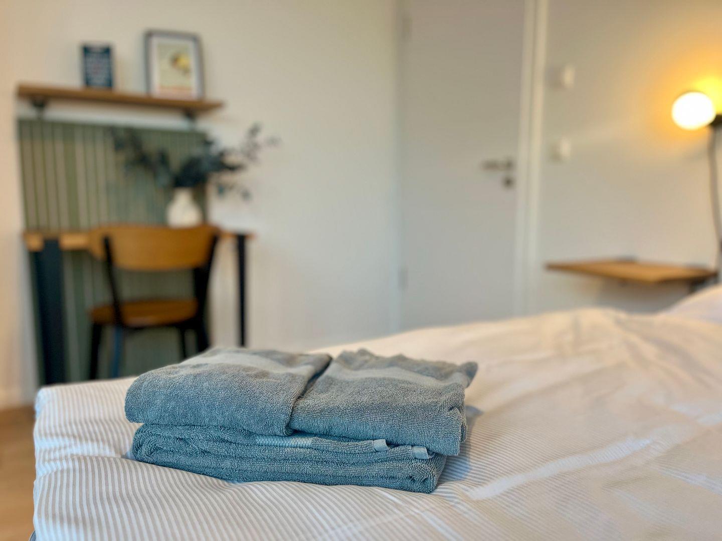 Handtücher (1 Duschtuch + 2 Handtücher) und Bettwäsche auf Anfrage, Zwischenreinigung, Handtuch-/Bettwäschewechsel