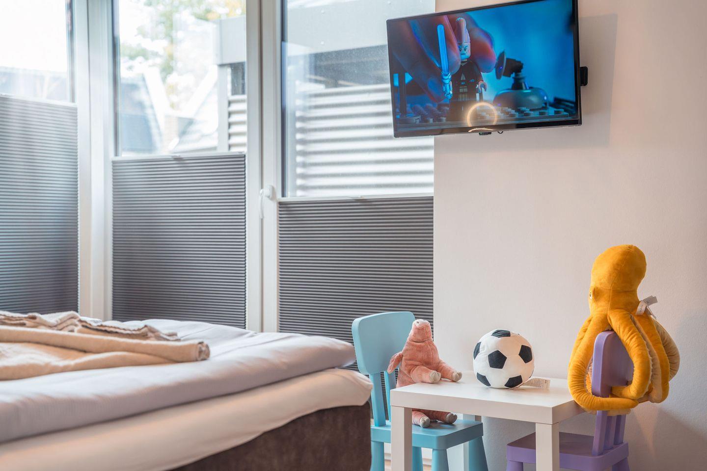 Auch für Familien mit Kindern ist bestens gesorgt: Ein Babybett und ein Hochstuhl sind vorhanden, ebenso wie eine kindersichere Steckdosenausstattung. Kinder sind ausdrücklich willkommen.