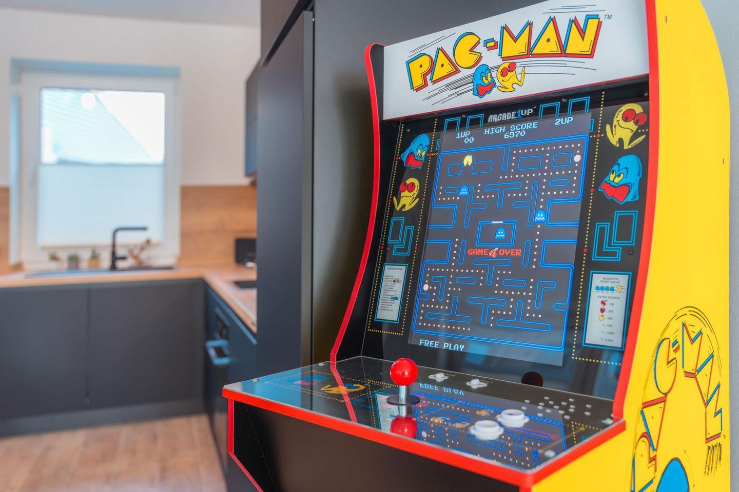 Der Außenbereich lädt mit einer eigenen Terrasse, Gartenmöbeln und einer Liegewiese zum Entspannen ein. Der Privatparkplatz direkt am Haus bietet Bequemlichkeit bei der Anreise. Die Unterkunft ist rollstuhlfreundlich gestaltet und bietet somit auch für Gäste mit eingeschränkter Mobilität angenehme Bedingungen.