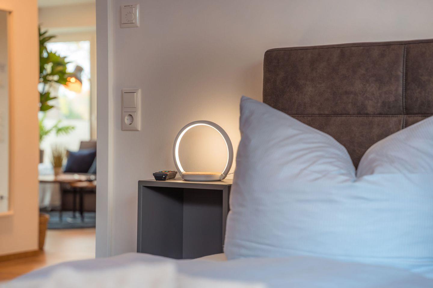 Schlafzimmer 1: Doppelbett (Maße: 180 x 200 cm- durchgängige Matratze), Nachttische, Leselampen, Kleiderschrank, Smart-TV, verdunkelnde Plissees