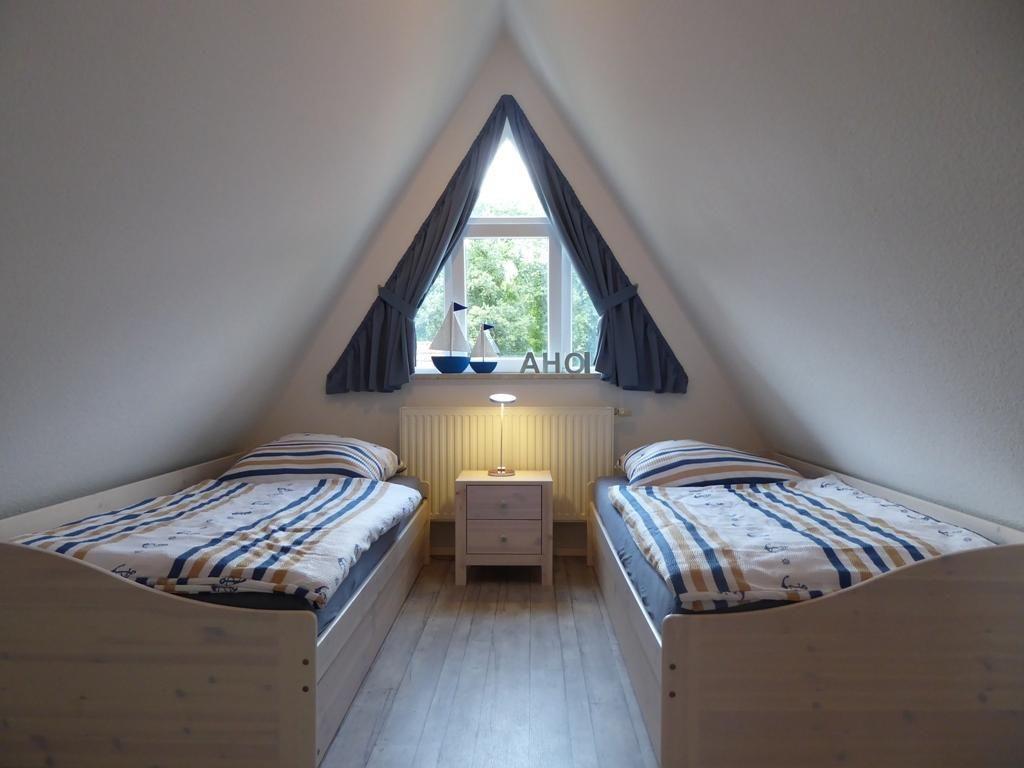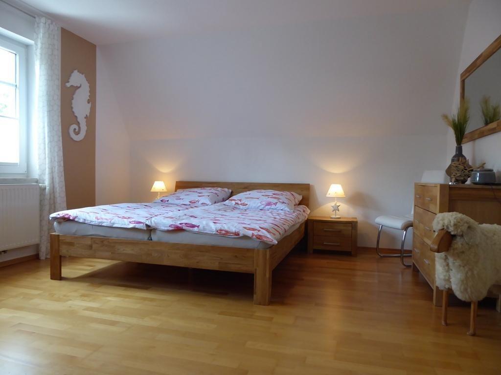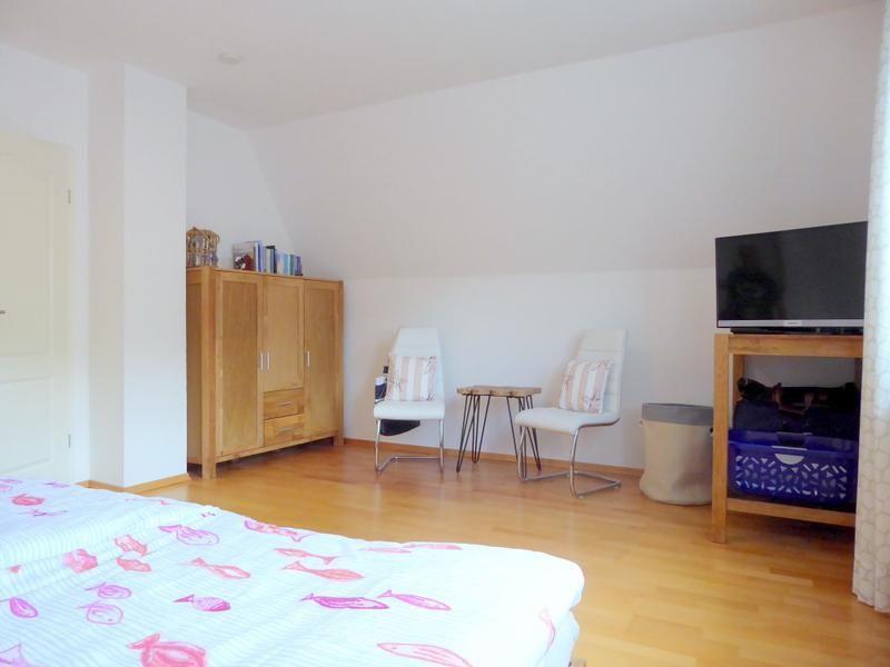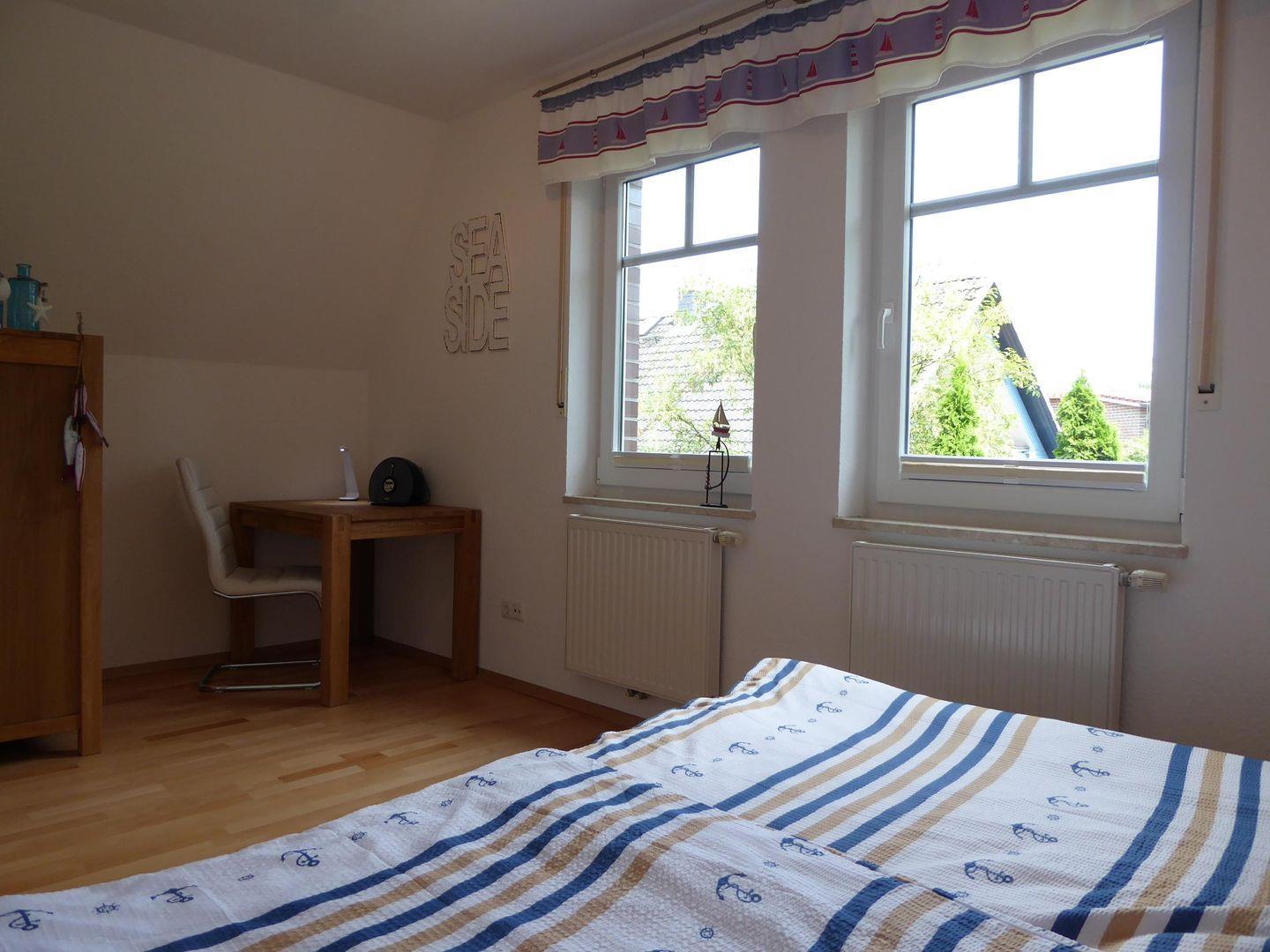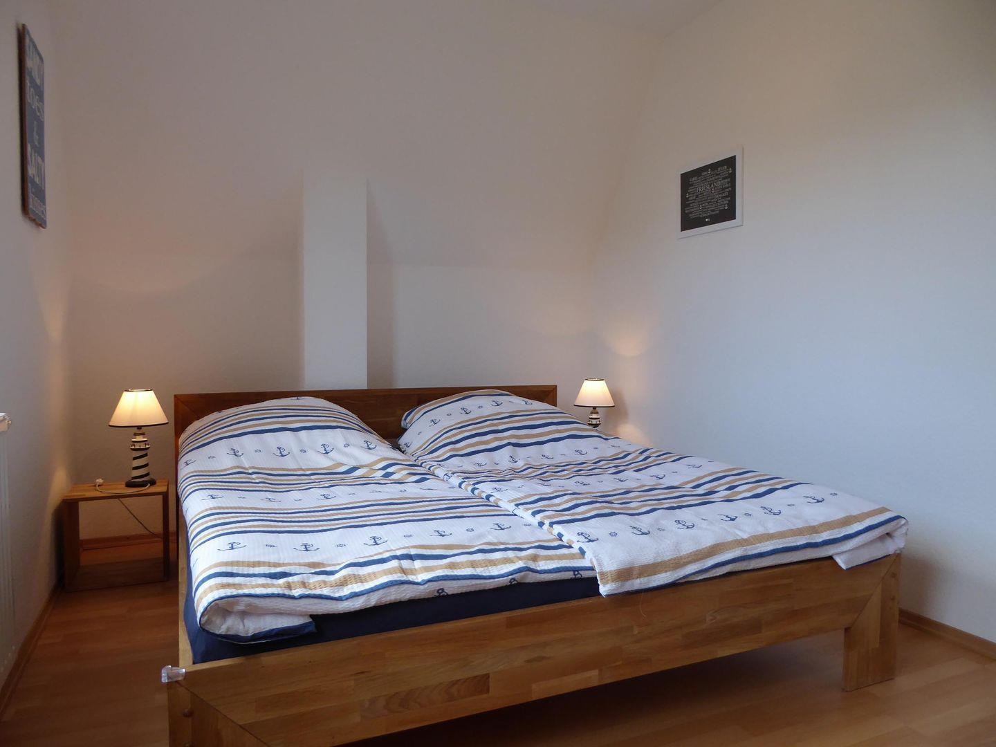 Die 2 Schlafzimmer im 1. OG sind jeweils mit einem 1,80 m breitem Doppelbett ausgestattet. Ein Schlafzimmer verfügt über einen Flatscreen-TV. Im 2. OG befindet sich das dritte Schlafzimmer mit 2 Einzelbetten.