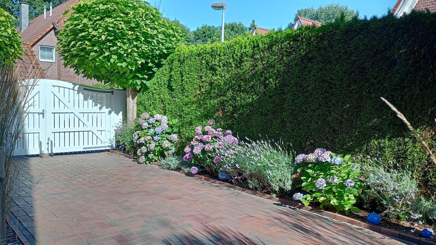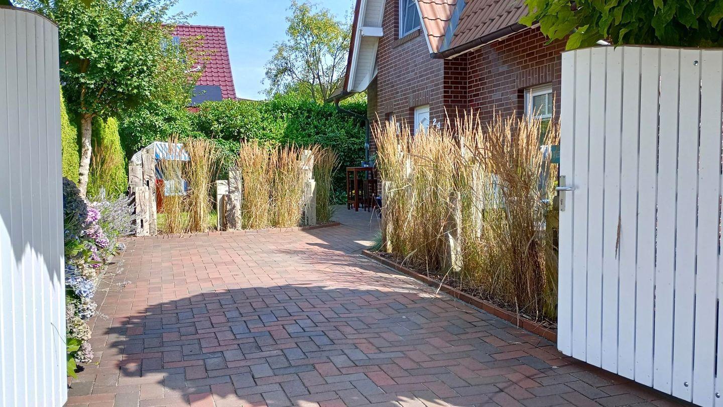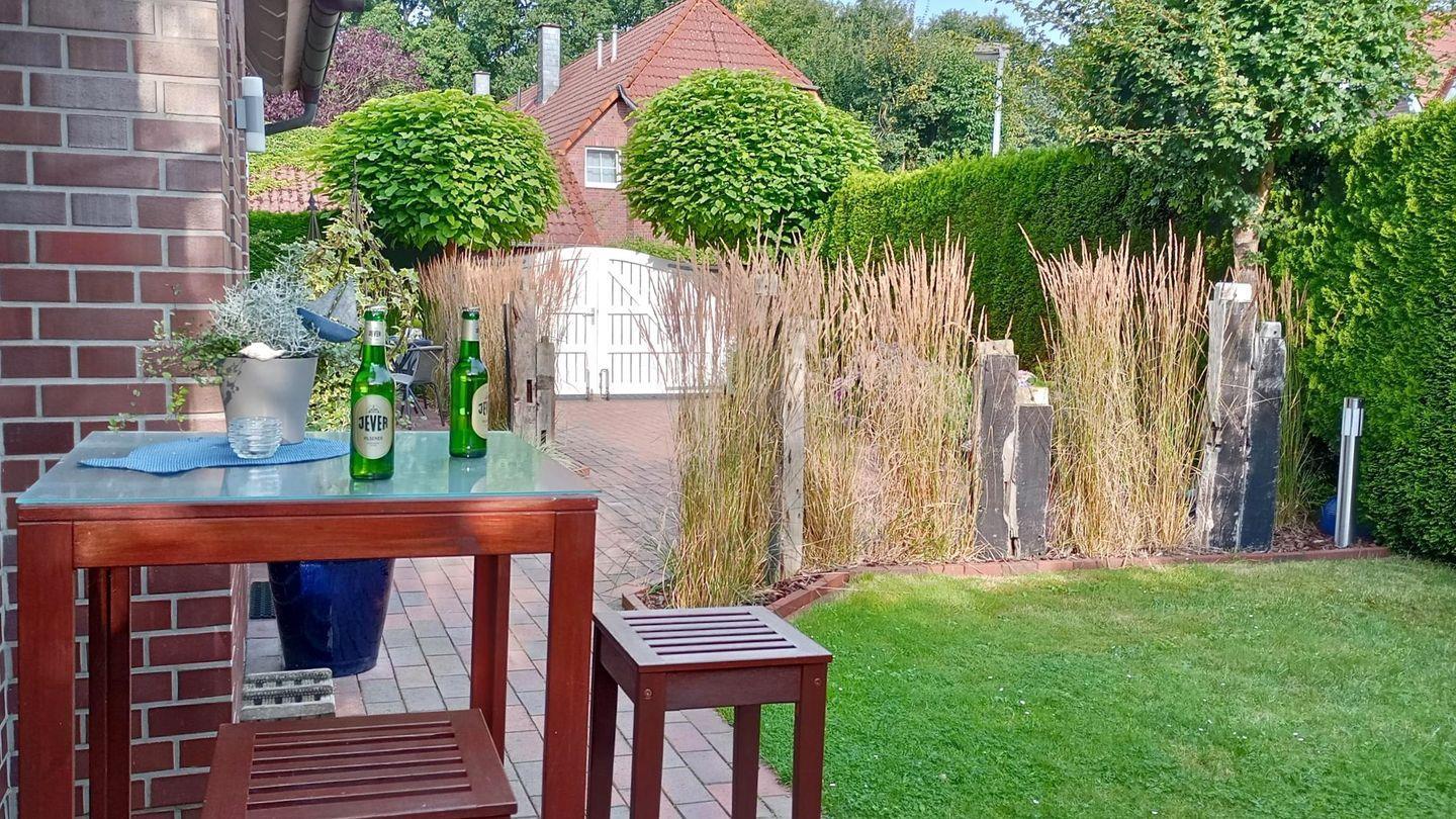 Im Erdgeschoss erwarten Sie ein lichtdurchflutetes Wohnzimmer mit 5 bodentiefen Fenstern mit einem wunderbaren Blick in den gepflegten Garten. Die vollausgestattete separate Küche mit Kaffeefiltermaschine + Padmaschine im friesischen Ambiente sowie ein Gäste-WC finden Sie ebenfalls im Erdgeschoss.
