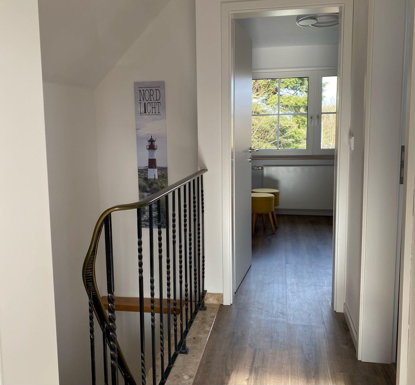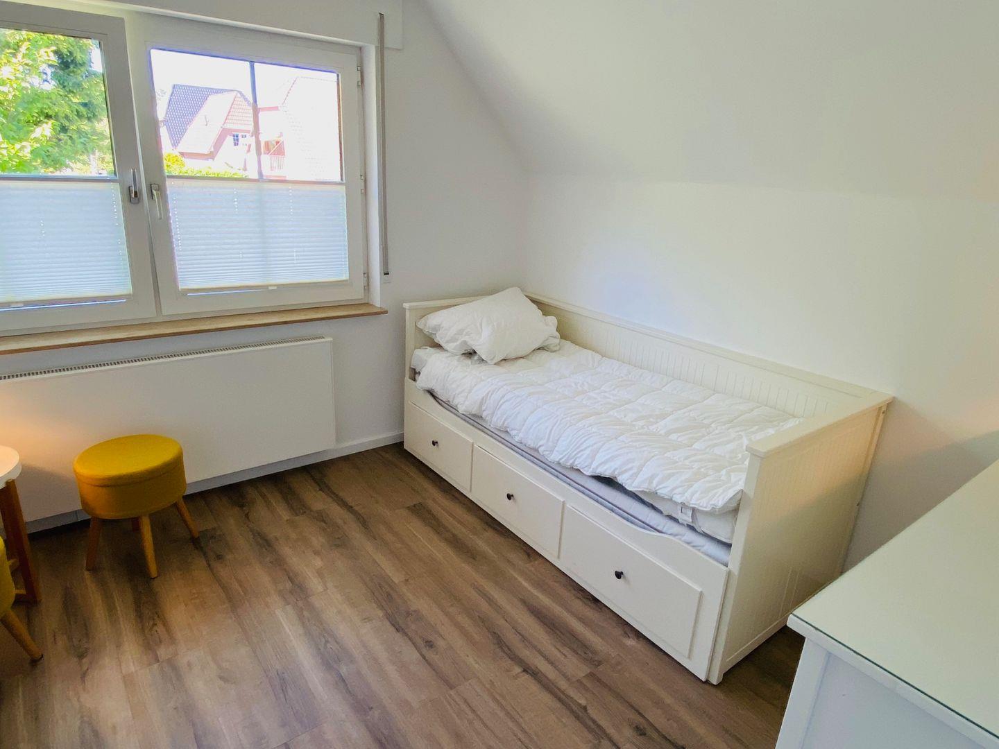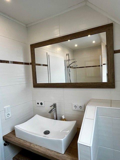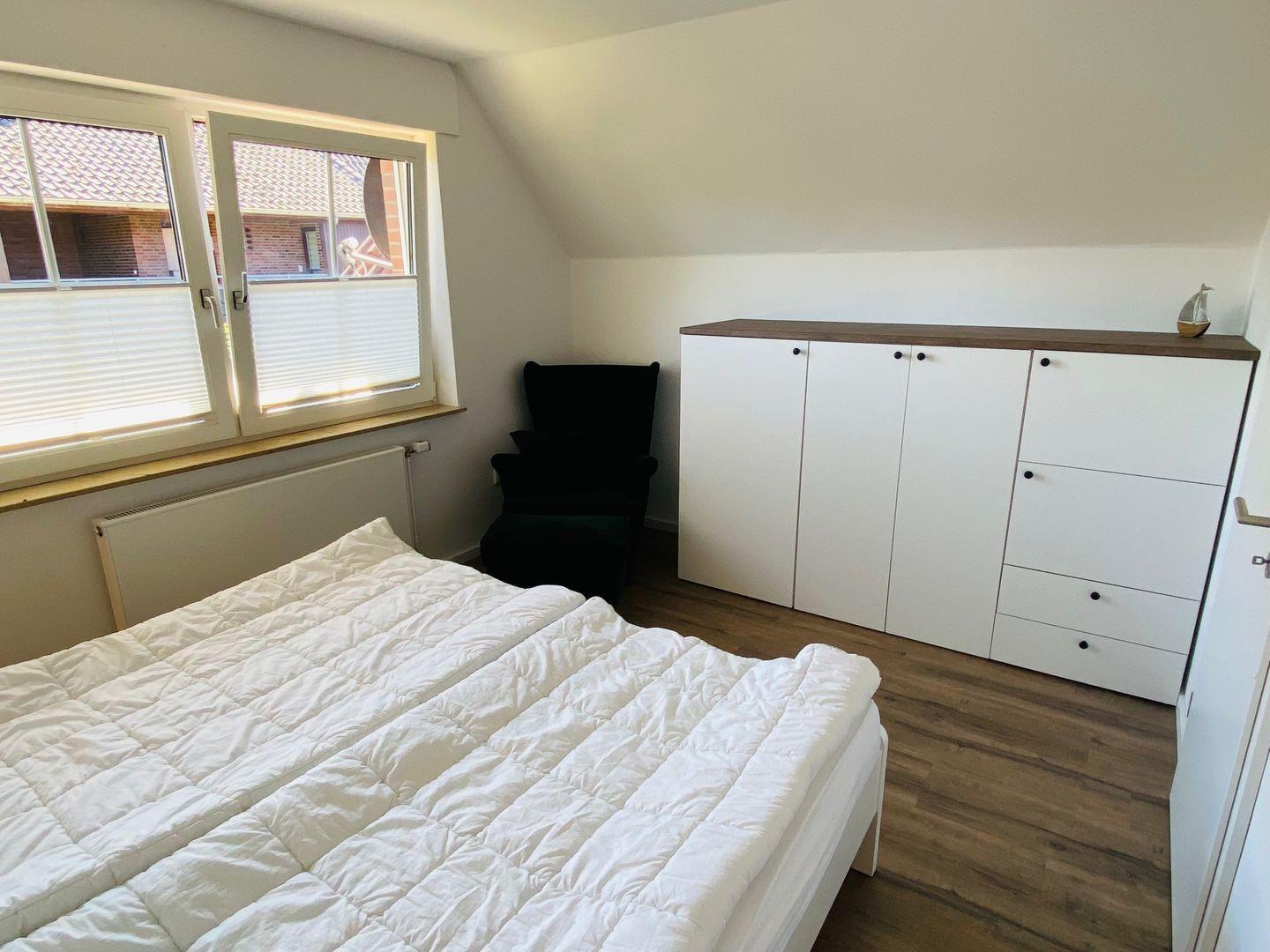 Oben geht es in die beiden Schlafzimmer für die Eltern mit Doppelbett und die Kinder mit zwei Einzelbetten, welche zudem ausziehbar sind. Ein Kinderreisebett ist im Haus vorhanden. Auch das Duschbad im Obergeschoss wurde komplett renoviert und mit edlen Armaturen ausgestattet!