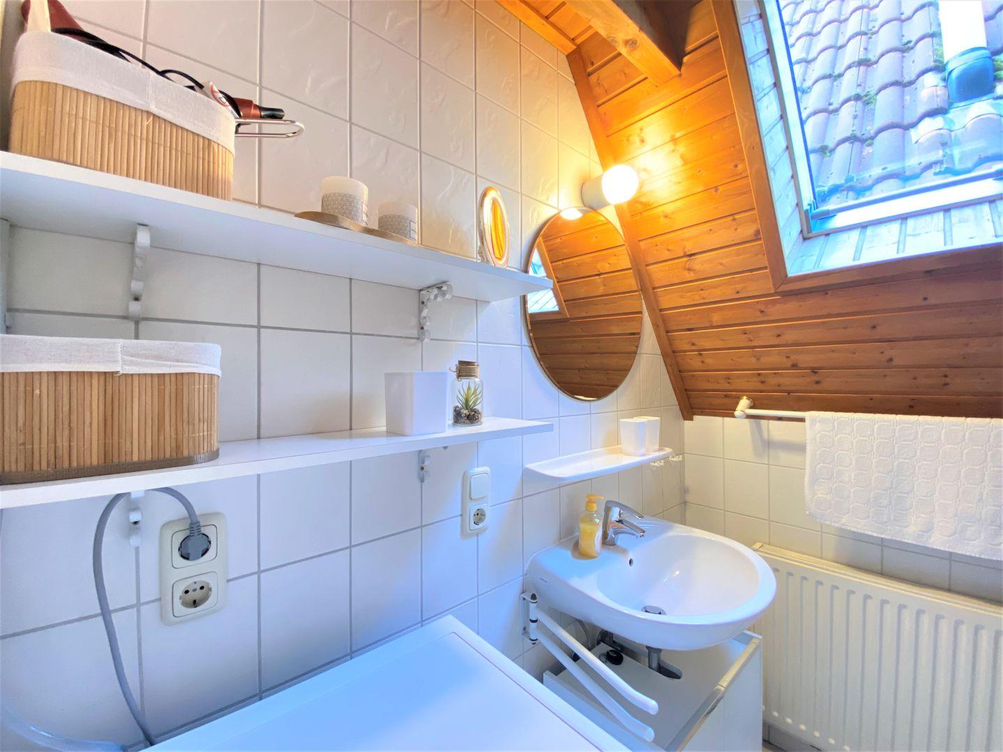 Schon beim ersten Gang ins Haus umgibt Sie das friesisch-charmante Ambiente dieses Hauses. Durch den großzügigen Wohn-Essbereich mit Fußbodenheizung und gemütlicher Wohnlandschaft gelangen Sie auf die Südterrasse mit idyllischem Blick in den Wald. Der Flat-TV mit DVD-Player und Stereo-Anlage bieten Ihnen beste Unterhaltung. Separat zum Wohn-Essbereich befindet sich die vollwertige Küche mit Fenster. Außerdem steht Ihnen im Erdgeschoss ein Gäste-WC zur Verfügung.