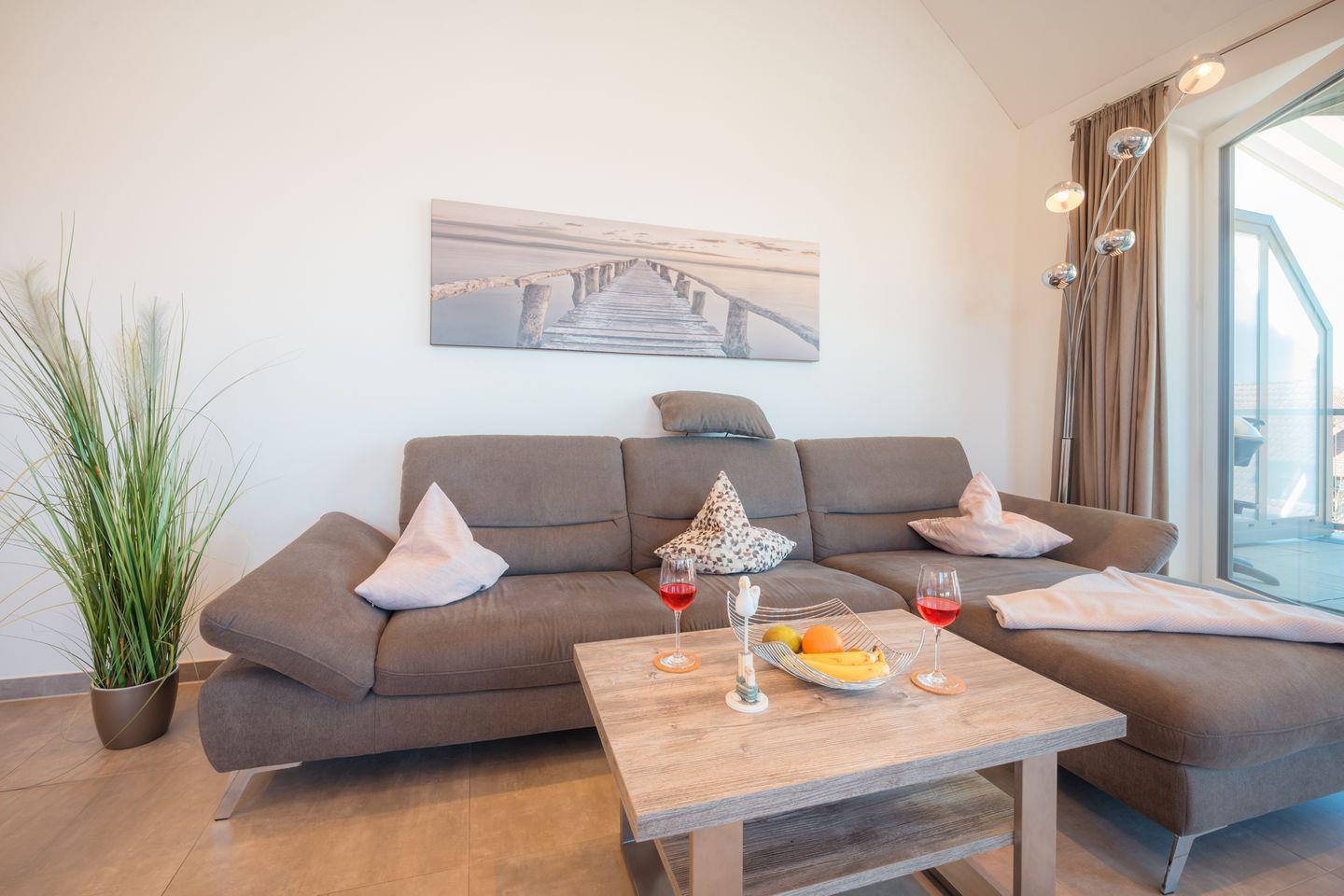 Das Premium-Penthouse „Oceans Eleven“! Eine eigene Privatsauna, wohlig-warme Stunden am Gaskamin mit Meerblick und großzügiges Raumgefühl durch bis zu 5 Meter hohe Räume.