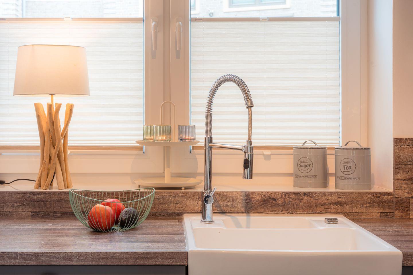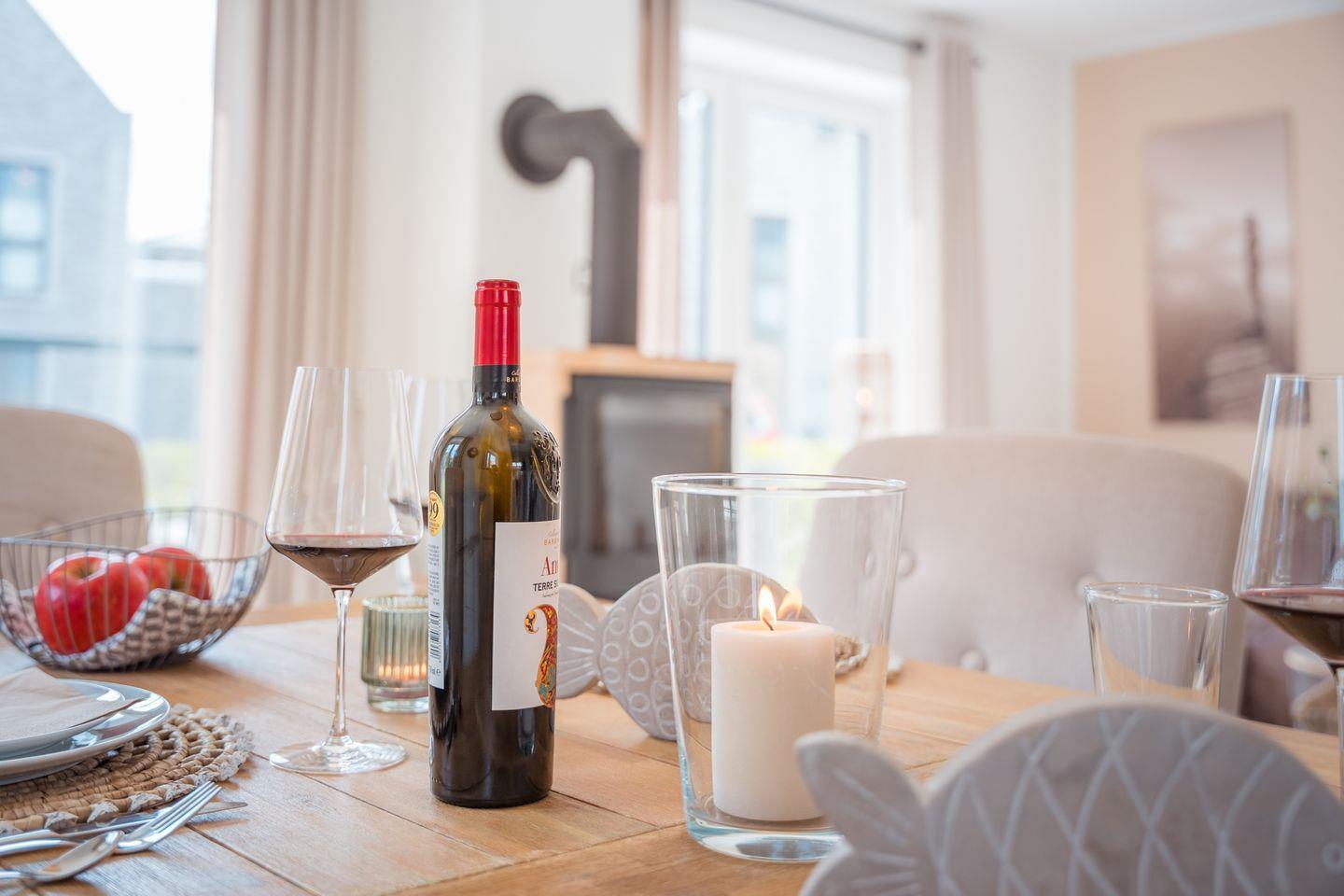 Die Einrichtung kommt elegant und stilsicher daher. Sie betreten den offenen Wohn-Essbereich und werden sich wohlfühlen: die offene Küche mit vielen Extras, der große robuste Esstisch oder die Lümmel-Eckcouch mit dem Kamin.