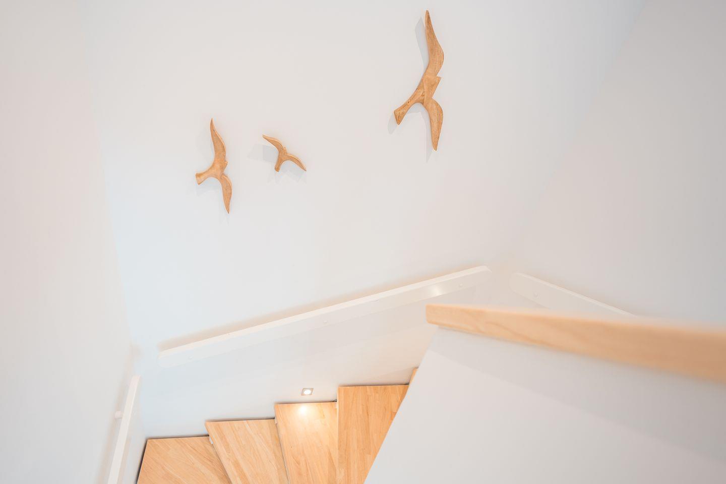 Im oberen Geschoss befinden sich alle drei Schlafzimmer und das Badezimmer mit ebenerdiger Dusche und großer Badewanne..