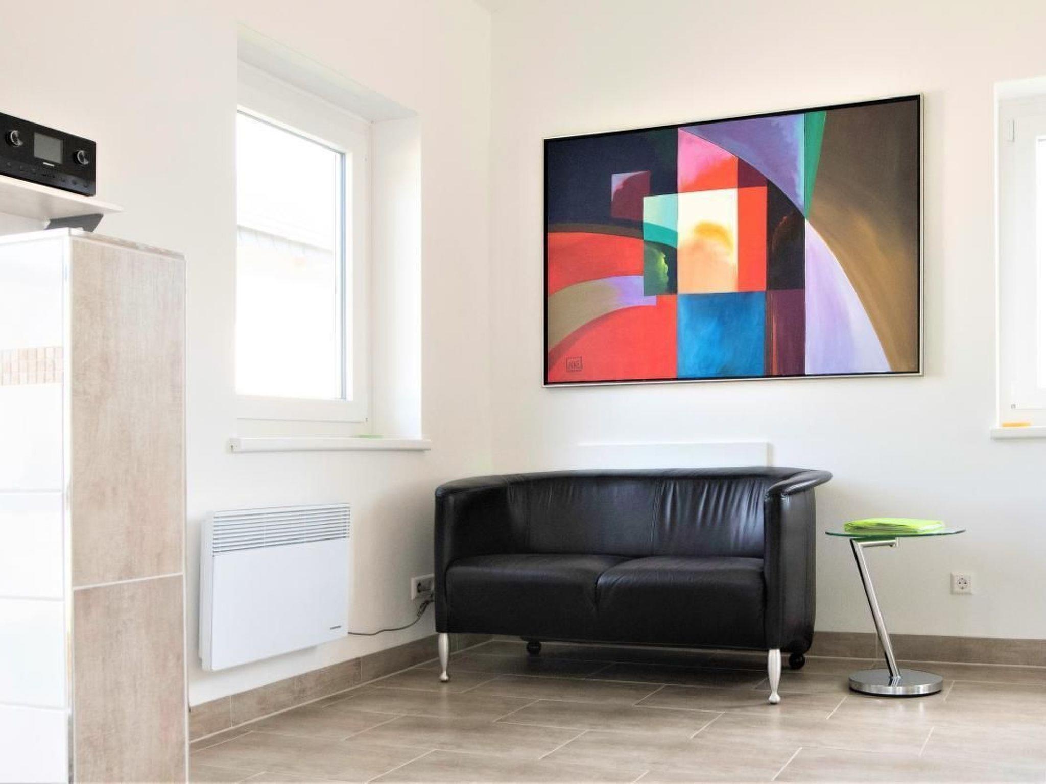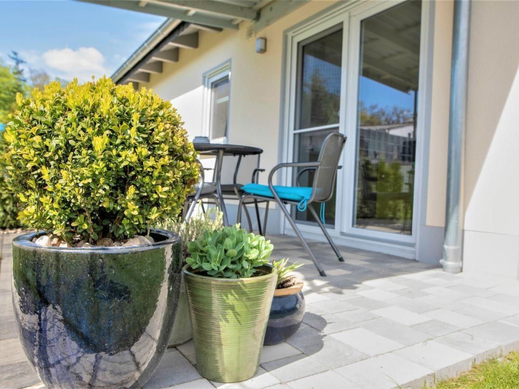 Do you know how beautiful it is on our sun terrace%3F You will find your personal and surprising answers to all these questions here with us and please note that we also expressly allow dog owners to holiday with us. A holiday with a dog means: If there are no people in the holiday home, there is no dog in the house! Animals are not locked up in our holiday homes, but are always at the side of their owners. Children are very welcome here. Simply bring your extra bed with you if required. Please also pack a suitcase for your four-legged companions, as we do not provide any pet utensils. The sun terrace faces south-west and is equipped with garden furniture and an awning. The property is enclosed by a fence and is therefore also ideal for children. The fence height of 1 metre allows the dogs to run freely on the 200 m² property. You can park your car directly at the holiday home on the path and the ground floor, fully tiled bungalow is approx. 50m² in size. In the eat-in kitchen with fully equipped kitchen and dining area there is a two-seater made of leather. A mini oven, a ceramic hob, a filter coffee machine and a toaster are part of the kitchen equipment. In the bedroom you can relax on the extra high double bed (160X200) and dream sweet dreams. The bathroom has a modern walk-in shower and a window. Two satellite TVs and an internet radio with USB connection complete the technical equipment. Connect your mobile phone to the radio and you can listen to your music. Wi-Fi is available not only in the house but also throughout the property. In cold weather, a modern electric heater provides cosy warmth. Just pay us a visit! See for yourself!