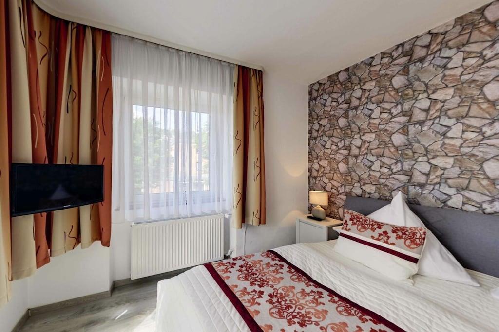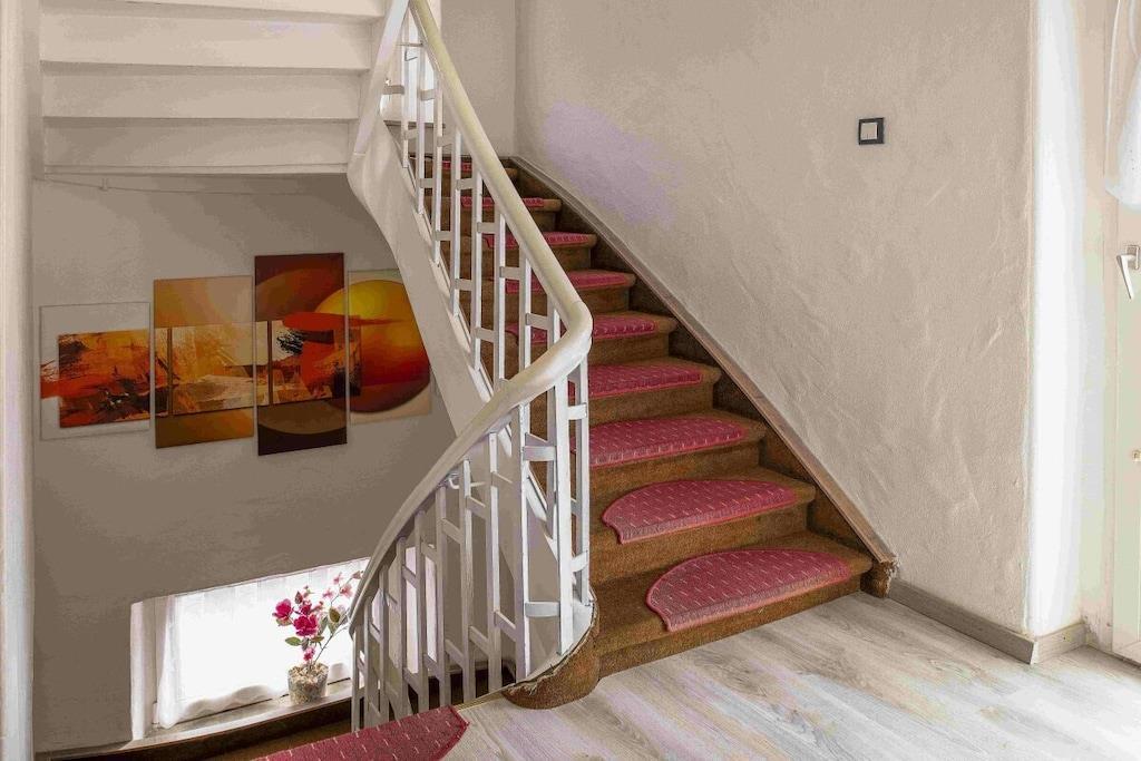 City Ferienhaus Daun in Daun Das große und moderne Ferienhaus liegt im Zentrum der schönen Kleinstadt und des Ferienortes Daun, in unmittelbarer Nähe zu vielen Sehenswürdigkeiten und Ausflugszielen. Das City Ferienhaus verfügt über mehr als 210 qm Wohnfläche, und zusätzlich 50 qm Nutzfläche und eine ruhig gelegene Außenterrasse sowie einen Wiesenbereich mit Grill, Kinderspielplatz und Springbrunnen - hinter dem Haus. Diese Bereiche sind mit Gartenmöbeln und Sitzgruppen ausgestattet. Aufgrund der Größe, vermieten wir das Haus auch gerne an größere Familien oder an Gruppen. Sollten Sie das schöne Haus mit nur wenigen Personen buchen wollen, ist das auch möglich. Der Grundpreis berechnet sich dann jedoch immer an der Mindest-Personenbelegung! Grosse Sauna mit 3 D-Boden zur alleinigen Nutzung (kostenlos) im Untergeschoß Internet / WLAN / Wireless / Wifi: Kostenlos nutzbar in allen Räumen! Sie erhalten bei der Anreise einen entsprechenden Code. Vor dem Haus ist liebevoll und aufwendig ein Zierkiesbereich angelegt worden. Mit Springbrunnen und einem kleinen Wasserfall. Das Haus und die Außenanlagen sind am Abend und nachts sehr attraktiv in einem Farbenspiel mit LED Strahlern angestrahlt. Das Ferienhaus erstreckt sich über 3 Etagen (+ Untergeschoss) und bietet bis Platz für bis zu 14 Personen. Es verfügt über insgesamt 6 separate Doppelschlafzimmer, davon 3 Doppelschlafzimmer mit zusätzlich jeweils einem Zusatzbett (Dreibettzimmer). Alle Schlafräume befinden sich in der 1. und 2. Etage (pro Etage jeweils 3 Schlafzimmer), alle Schlafzimmer sind mit hochwertigen Boxspringbetten ausgestattet, 2 große Schlafzimmer in der 1. Etage und ein 3. großes Schlafzimmer in der 2. Etage mit jeweils einem Boxspringbett (1,80 m x 2,00 m) und einem Zusatzbett (0,90 m x 2,00 m). 1 weiteres Schlafzimmer in der 1. Etage mit Boxspringbett (1,80 m x 2,00 m) und 2 weitere Schlafzimmer in der 2. Etage mit Boxspringbetten (1,40 m x 2,00 m). 4 der 6 Schlafzimmer (Die 3 Dreibettzimmer und ein kleineres Schlafzimmer in der 2. Etage) verfügen zusätzlich über eine moderne Waschgelegenheit mit Spiegel und Schminkspiegel. 4 der 6 Schlafräume sind mit zusätzlichen Waschgelegenheiten und modernen LED Spiegeln mit Schminkspiegeln, LED Armaturen, Hotelfön und Unterschrank ausgestattet. Das Ferienhaus verfügt über einen modernen und hell gestalteten und eingerichteten Wohnraum im Erdgeschoss - mit angegliedertem Esszimmer, zusätzlich gibt es auch ein Doppelschlafsofa im Wohnzimmer. Eine große Sitzgruppe im Wohnraum, großer Ultra-HD Fernseher mit USB-Anschluss, DVD/Bluerayplayer. Gemütlichkeit schafft auch ein schöner echt wirkender Elektrokamin und ein Deckenventilator mit Fernbedienung. Spiele sind ebenfalls vorhanden. Esszimmer mit ausziehbarem Esstisch – bis zur höchsten Personenzahl. Eine 2. Essecke befindet sich zusätzlich in der Küche. Eine moderne, große Küche mit Sitzgruppe und zusätzlichem Ausgang zur Terrasse, Spülmaschine, Elektroherd mit Ceranfeld und Backofen, Kühlschrank mit Gefrierfach (zusätzlicher Gefrierschrank im Kellerraum), 2 Kaffeemaschinen = Sanseo und eine Filtermaschine. Das schöne Haus verfügt über 3 modern gestaltete Bäder, jeweils ein Bad mit WC auf jeder Etage. Als 4. Duschmöglichkeit bietet sich zudem die Dusche im Saunabereich an (verschliessbar). Bad im Erdgeschoss: mit erhöhtem WC, ebenerdiger Dusche, Waschbecken, LED Spiegel mit Schminkspiegel, Unterschrank, LED beleuchtete Armatur, Hotelfön Bad in der 1. Etage mit großer Whirlpoolbadewanne, und Seitendüsen WC, Waschbecken, LED Spiegel mit Schminkspiegel, Fernseher im Bad mit DVD Player, Unterschrank, LED beleuchtete Armatur, Hotelfön Bad in der 2. Etage mit moderner Dusche (Fototapete in der Dusche), WC, Waschbecken, LED Spiegel mit Schminkspiegel, Unterschrank, LED beleuchtete Armatur, Hotelfön Im Unterschoss (Kellerbereich) befindet sich ein Raum (Waschraum) mit Waschmaschine und elektrischem Wäschetrockner (können gegen eine geringe Gebühr von 4,50 EURO incl. Waschmittel genutzt werden). Zudem finden Sie im Untergeschoss des Hauses einen zusätzlichen Kühlschrank und einen großen Gefrierschrank, die beide noch zusätzlich zur Küche, für Kühlmöglichkeiten sorgen. Grosse Sauna im Untergeschoss, zur alleinigen Nutzung (kostenlos). Zur Sauna gehören eine Dusche und ein Ruheraum mit Sitzgelegenheiten, Tisch und Zeitschriften. Zur hochwertigen Ausstattung des Hauses gehören: Mikrowelle, 2 Kaffeemaschinen (Sanseo und Filtermaschine), Toaster und Wasserkocher. Töpfe und Pfannen sowie Besteck und Geschirr für die höchstmögliche Personenzahl sind selbstverständlich vorhanden. Kinderbett und Hochstuhl können kostenlos bereitgestellt werden. Zudem finden Sie in der Wohnung natürlich auch eine ausreichende Grundausstattung an Toilettenpapier, Reinigungsmitteln, Spülutensilien, Geschirrtücher etc. Außenbereich: Im Außenbereich des City Ferienhauses Daun (Ausgang von der Küche aus) befindet sich eine Terrasse mit Gartenmöbeln zur Alleinnutzung. Eine 2. Sitzgruppe befindet sich auf der ruhig gelegenen Wiese hinter dem Haus, mit Kinderspielturm (2 Schaukeln, eine Rutsche und ein Sandkasten). Auch ein Grill und ein Springbrunnen befinden sich dort. Dieser Außenbereich gilt zur Nutzung für beide Ferienhäuser (City Ferienhaus Daun und City Ferienhaus Vulkaneifel). Zudem gibt es einen kleinen Balkon aus der ersten Etage des Hauses. Das City Ferienhaus Daun verfügt über 4 Parkplätze (zzgl. eines Garagenparkplatzes) direkt hinter dem Haus. Viele Sehenswürdigkeiten und Freizeiteinrichtungen sind nur wenige Gehminuten entfernt. Einkaufen, Shoppen, Restaurants, Cafes, Kino, Wellness oder Hallen- Warmwasserbad usw. finden Sie direkt um die Ecke. Ein großer Supermarkt und 3 Bäckereien (auch mit Sonntagsverkauf) finden Sie nur ca. 100 bis 150 Meter entfernt. Die 3 berühmten Seen (Maare) liegen in nur 2 bis 3 km Entfernung. Besuchen Sie den schönen Kurpark in Daun. Das Wanderg