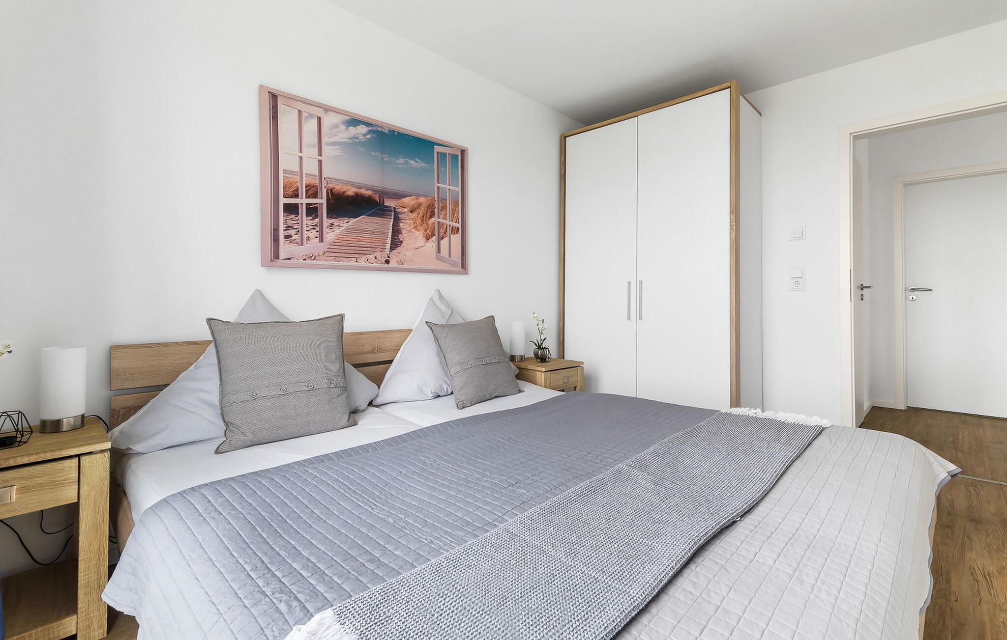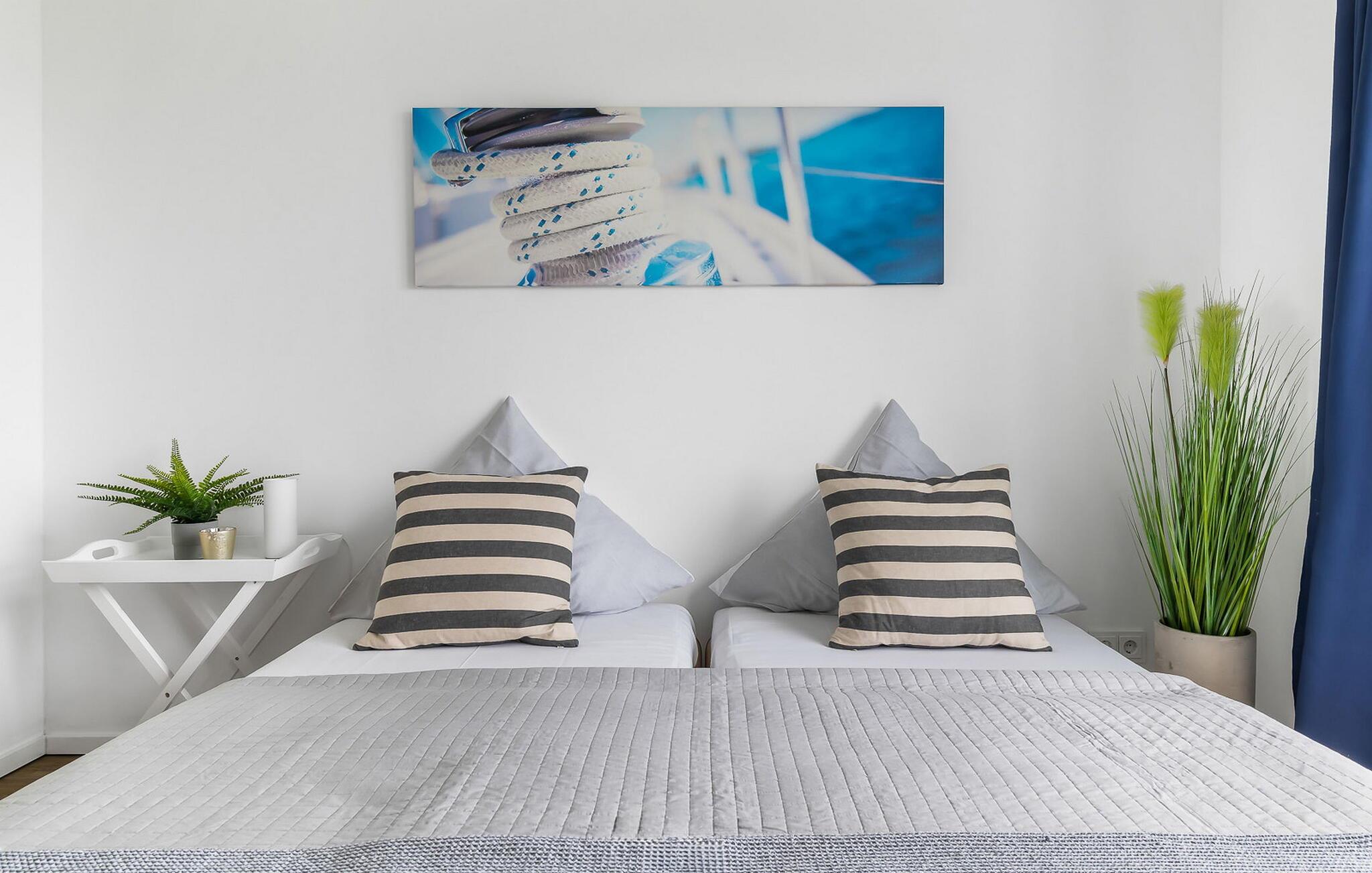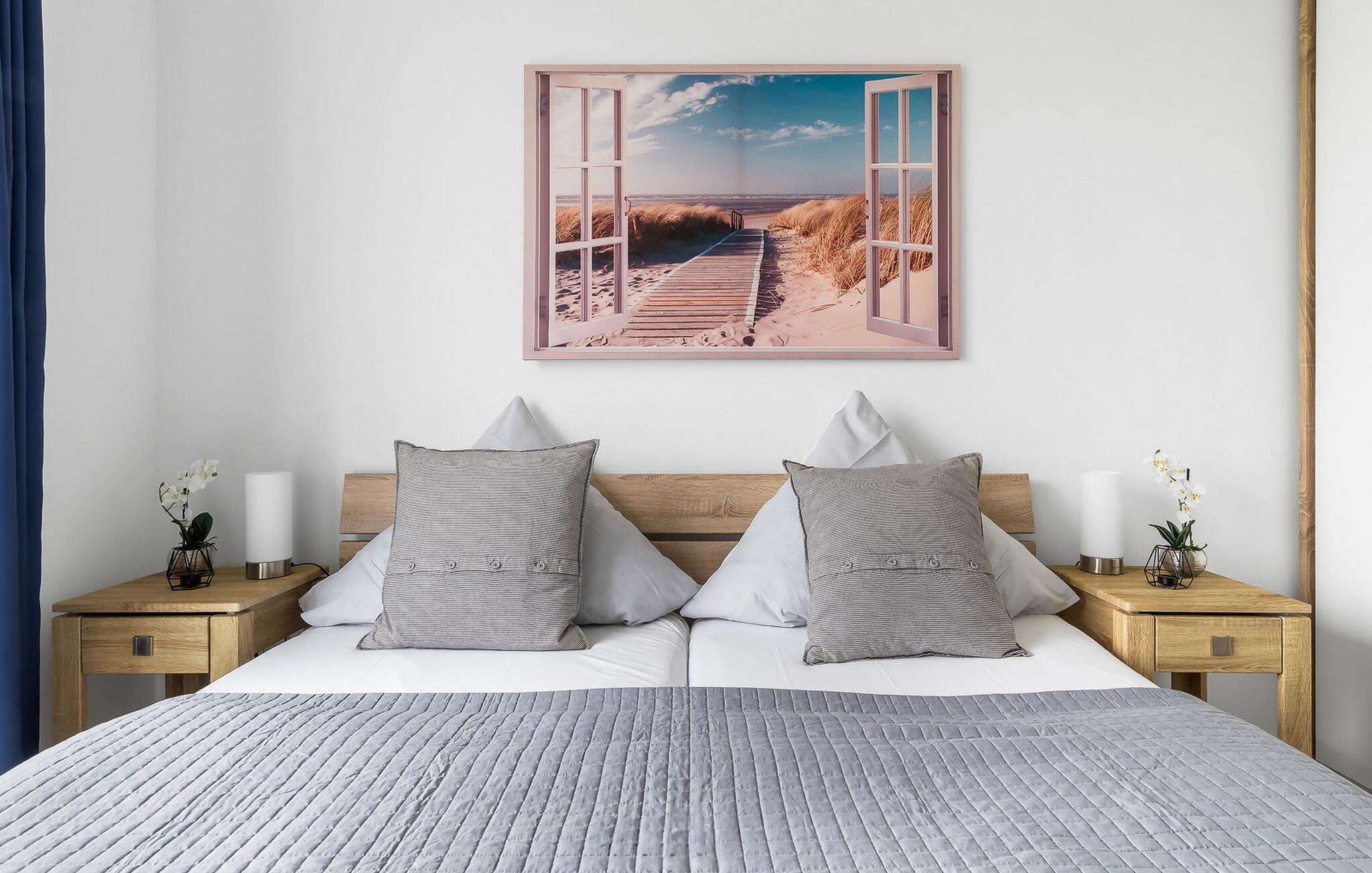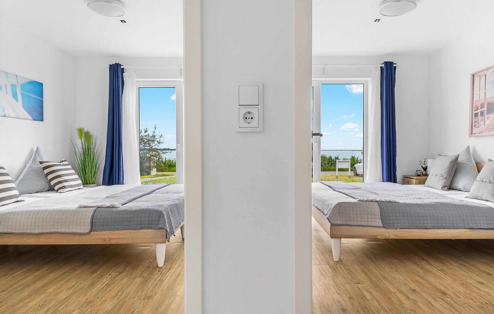 Leiligheten har to soverom, begge med en fantastisk utsikt over Schlei og TV. To ekstra soveplasser kan tilbys på forespørsel i stuen med en uttrekkbar sofa (160x193 cm) (rommet kan ikke mørklegges helt).