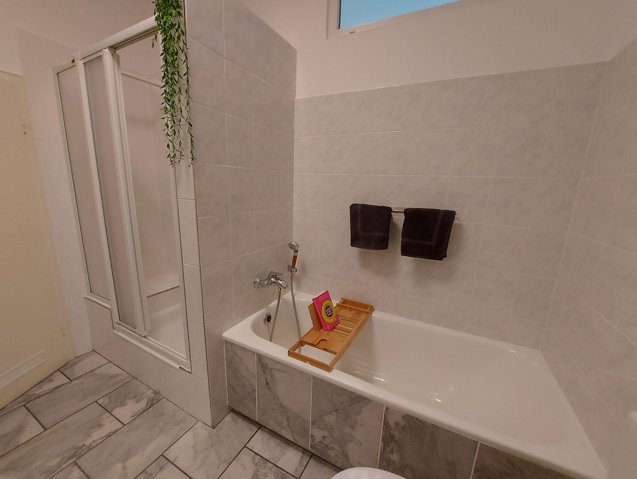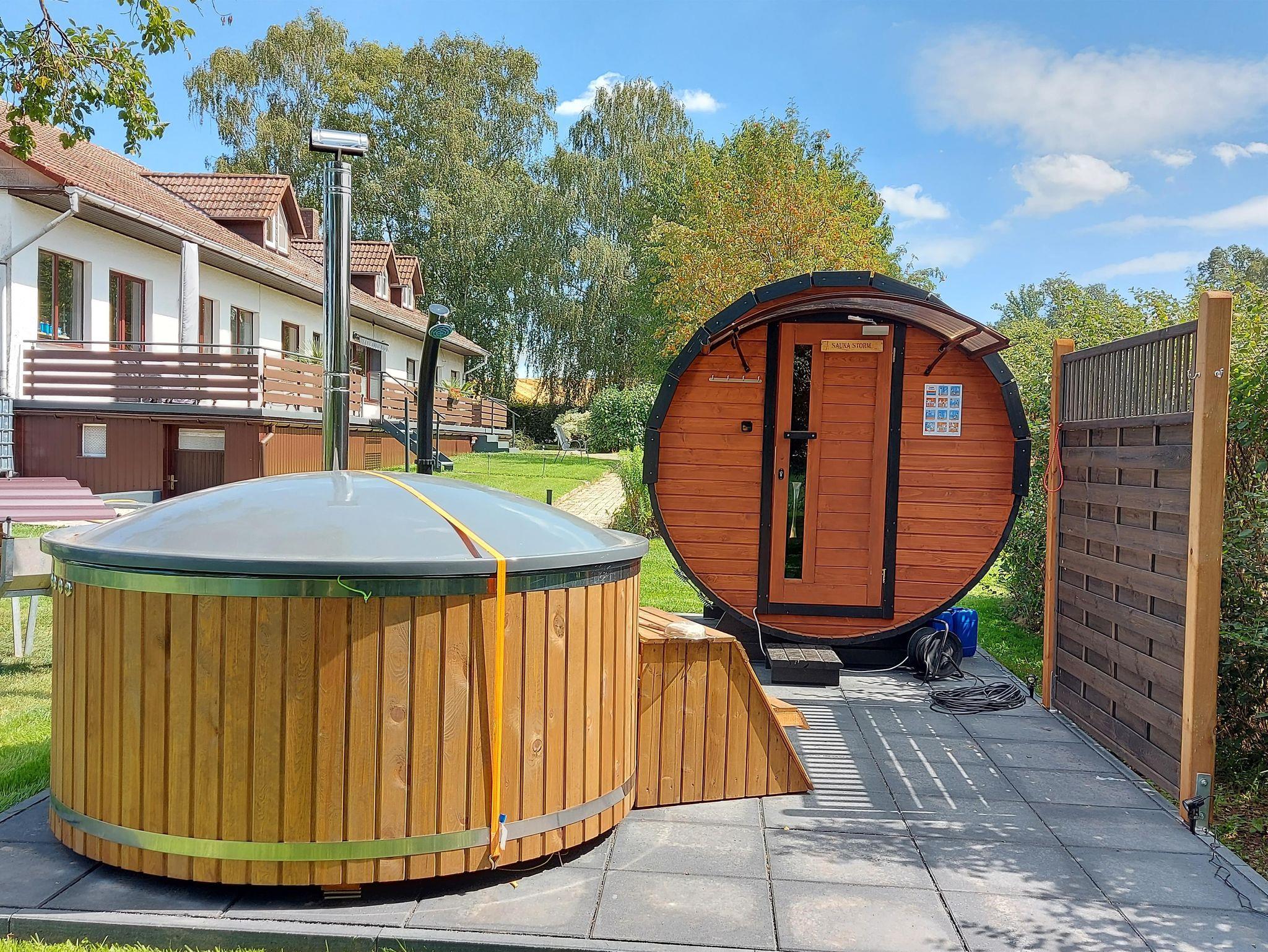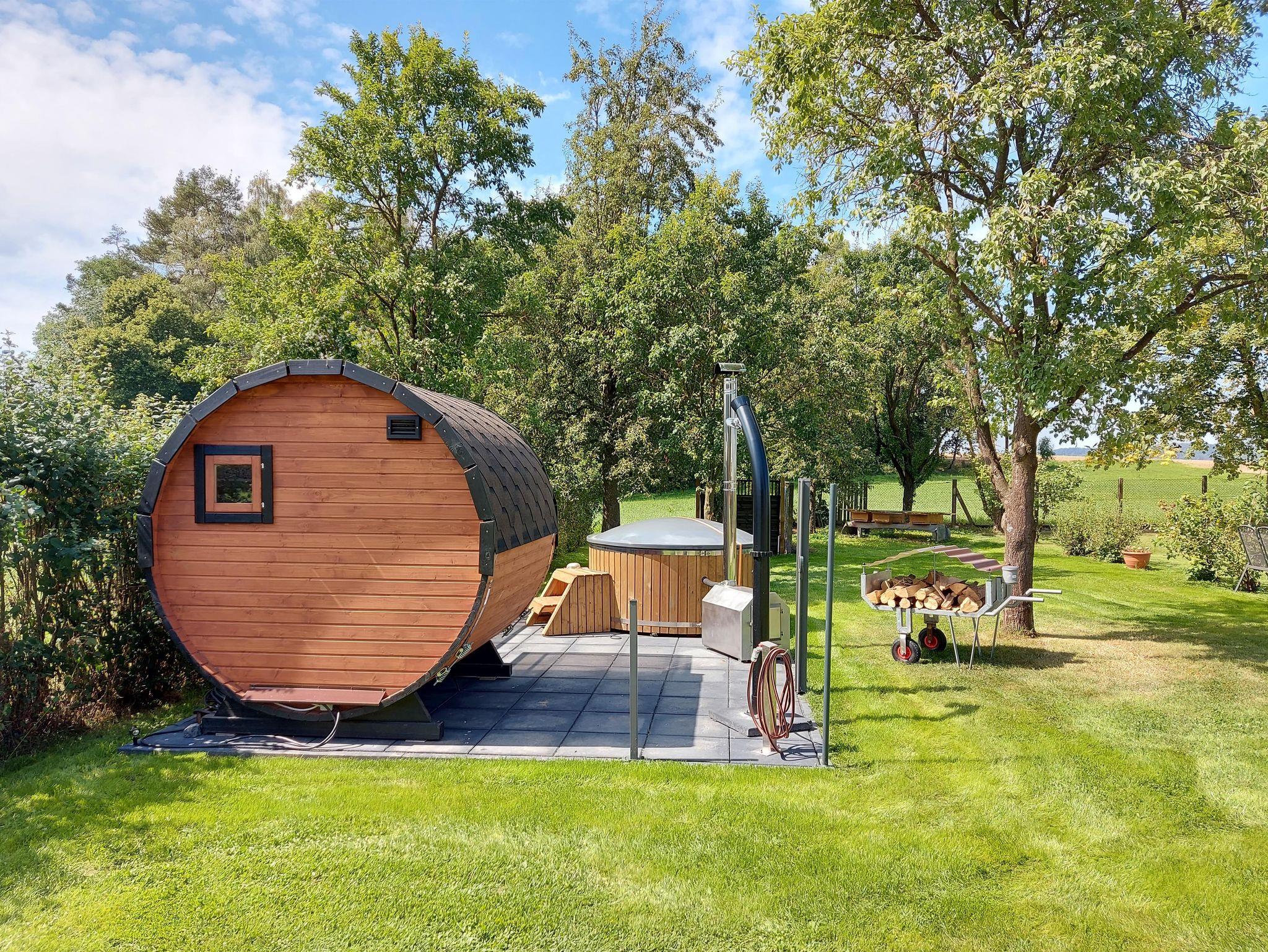 In der geräumigen, stilvoll eingerichteten Küche befindet sich unter anderem ein Backofen, Cerankochfeld, Spülmaschine, Kühlschrank mit Eisfach, Kaffeeautomat, Tassimo, Wasserkocher, Toaster, Koch- und Essgeschirr. Ihre leckeren zubereiteten Mahlzeiten genießen Sie auf einer bequemen und modernen Sitzecke oder auf dem Barstuhl am Hochtisch mit toller Sicht in die Natur. Im ansprechend gestalteten Schlafzimmer mit großem Kleiderschrank und einem 180 x 200 cm Wohlfühl-Doppelbett ist ein erholsamer und ruhiger Schlaf so gut wie garantiert. Das charmante Badezimmer ist mit beleuchtetem Doppelwaschtisch, WC, Dusche, Badewanne und Waschtrockner bestückt. Richtig gemütlich wird es im Wohnzimmer mit Sofalandschaft, Smart TV und einer Stereoanlage. Hier ist auch der Zugang zu Terrasse und Garten. Auf der großzügigen Terrasse samt Gartenmöbel und Zugang zum Garten gibt es die Gelegenheit sich herrlich zu entspannen. Die Nutzung einer Feuerschale für einen stimmungsvollen Abend unter freiem Himmel steht zur Verfügung. Ein kleiner Spa/Wellness Bereich (gegen Aufpreis) mit Fasssauna und Hot Tub/Whirlpool ist auf einer Außenterrasse eingerichtet und sorgt für Erholung in relaxter Atmosphäre.