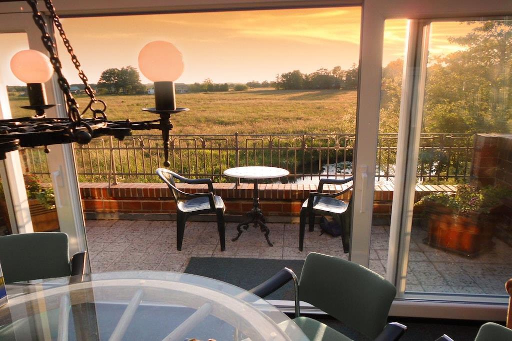 Former pumping station on the Eider dike. Direct access to the Eider, fantastically surrounded by green u. Water areas, romantic with its own bridge!