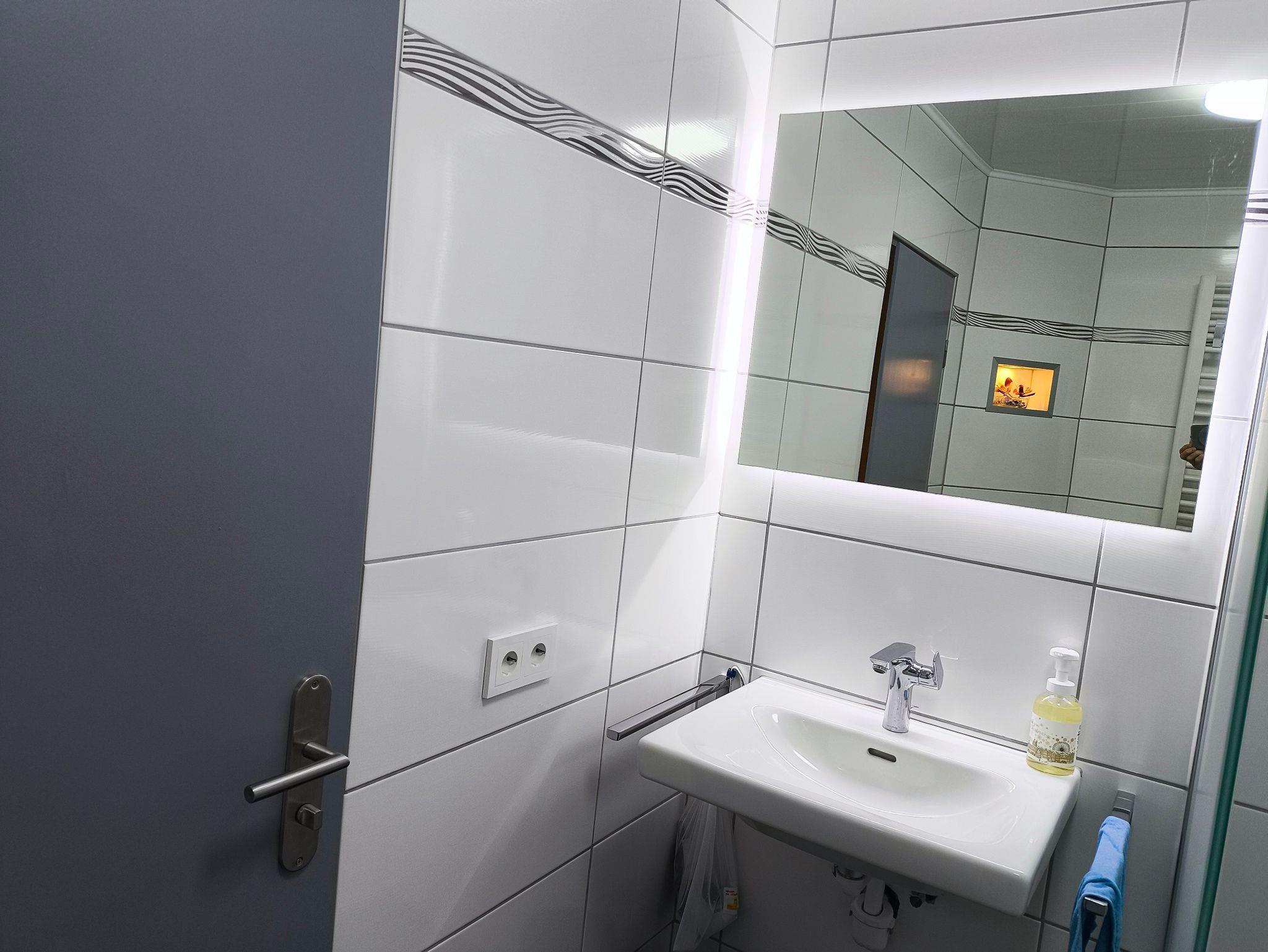 Im Wohnzimmer gibt es noch ein vollwertiges ( 90 x 2,00 m ) Schrankbett. Eine voll ausgestattete Küche, Bad mit Wanne (Duschen möglich). SAT TV, Radio u. CD-Anlage. Internetzugang ( WLAN ) vorhanden.