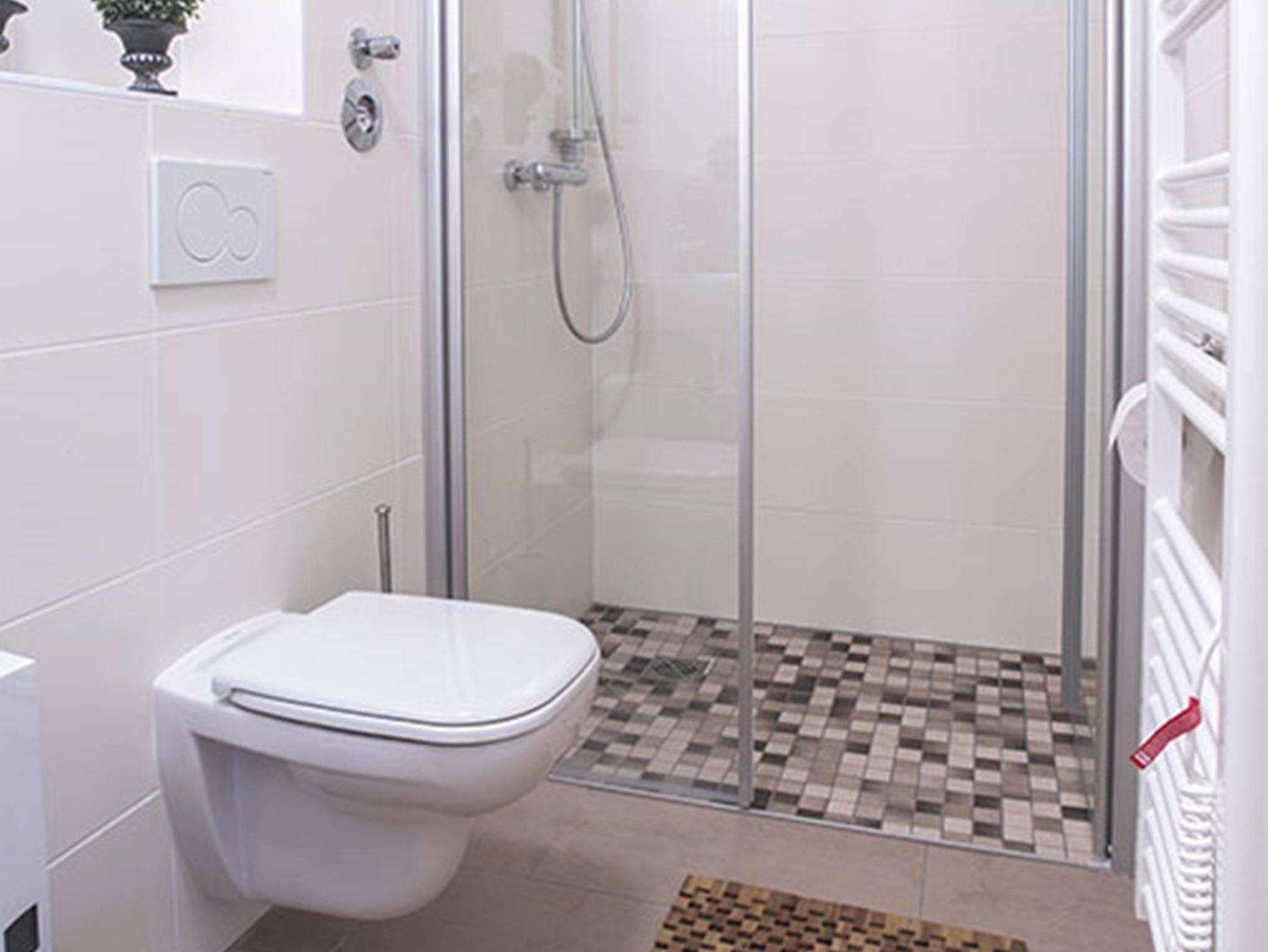Das helle und freundliche Schlafzimmer ist mit einem Doppelbett und 2 hochwertigen, separaten Matratzen eingerichtet. Das geflieste Bad ist mit hochwertiger Ausstattung versehen, dazu gehören die ebenerdige Dusche mit Glastür, Waschtisch und WC.
