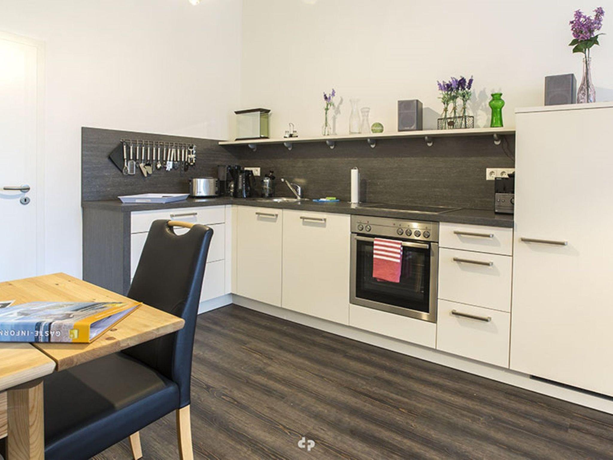 Das Appartement hat ein großes Wohnzimmer mit offener Küche und Eingang über die Terrasse. Ihnen stehen im Wohnraum ein gemütliches Sofa (ausziehbar 1,60m breit) und zwei bequeme Sessel zur Entspannung zur Verfügung. Der moderne Flachbildfernseher sowie eine Soundanlage können außerhalb Ihrer Aktivitäten genutzt werden.