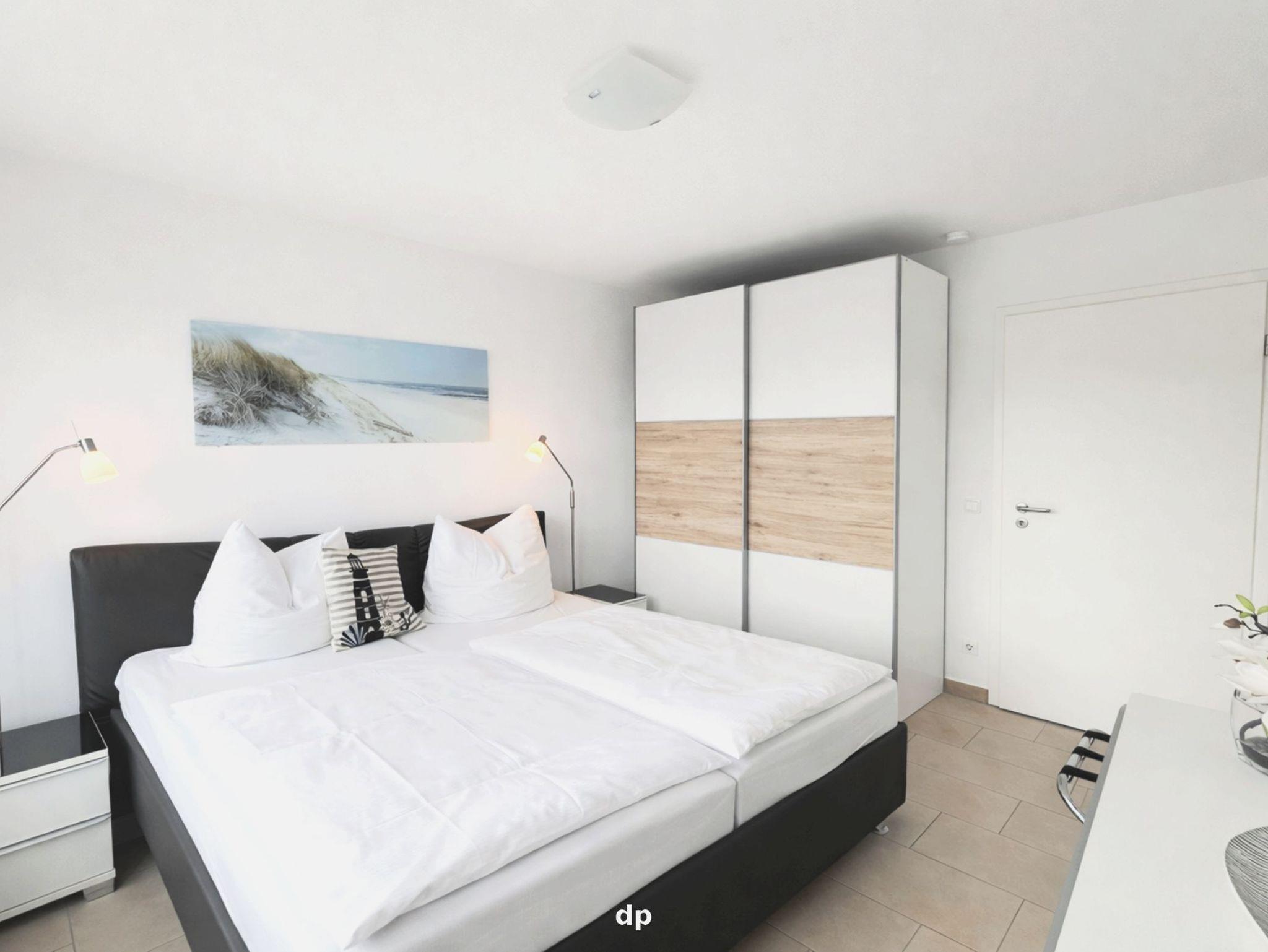 • Das Schlafzimmer verfügt über ein Doppelbett mit zwei Matratzen, einen Kleiderschrank und eine Kommode. Der Wohnbereich ist mit modernen Möbeln, einer Schlafcouch und TV ausgestattet.