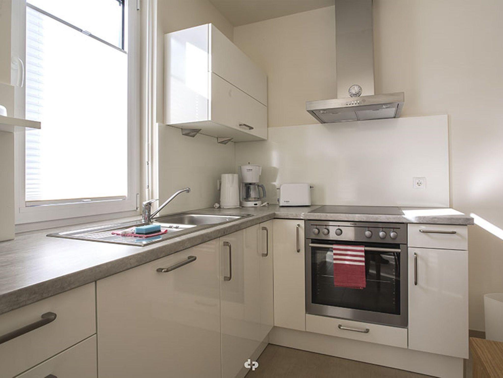 • Die hochwertige Küche ist ausgestattet mit Cerankochfeld, Backofen, Geschirrspüler, Kühlschrank, Kaffeemaschine, Toaster, Töpfen und Pfannen sowie selbstverständlich ausreichend Geschirr und Besteck. Der Essbereich schließt sich unmittelbar an die Einbauküche an.
