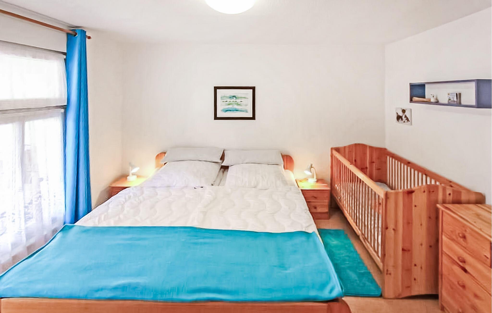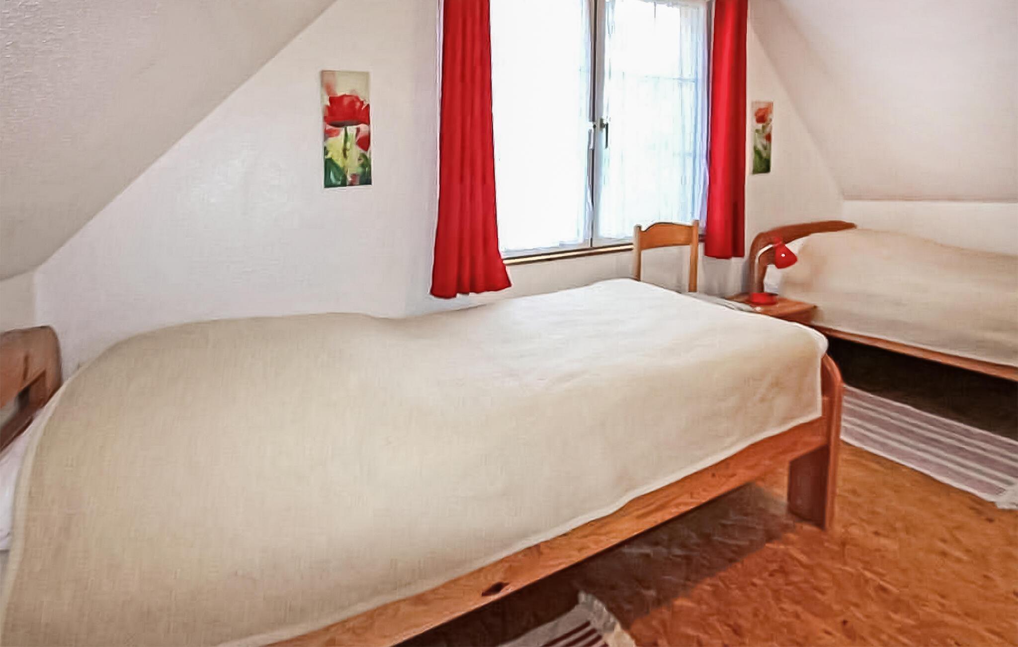 Ferieboligen ligger på en separat fritidseiendom i vakre skogkledde omgivelser rett bak sanddynene (strand ca. 50 m) i bydelen Neuhaus. Innredet i første etasje med kjøkken-stue (spisebord med stor hjørnebenk, flatskjerm-TV, radio, elektrisk komfyr med stekeovn, kjøleskap med fryser, mikrobølgeovn, diverse kjøkkenutstyr), soverom (dobbeltseng, 1 barneseng kan legges til) og dusj/WC med vaskemaskin. Vaskemaskinen kan kun brukes fra mai til oktober. I 1. etasje er det en stue (polstrede møbler med sovefunksjon, flatskjerm-TV, radio/CD, spisebord) og en annen soveavdeling med 2 enkeltsenger (skillevegg uten dør). Huset er sentraloppvarmet. WLAN, terrasse, grill og parkeringsplass er tilgjengelig. Totalprisen inkluderer sluttrengjøring, sengetøy, vann- og energiforbruk. Håndklær må medbringes.