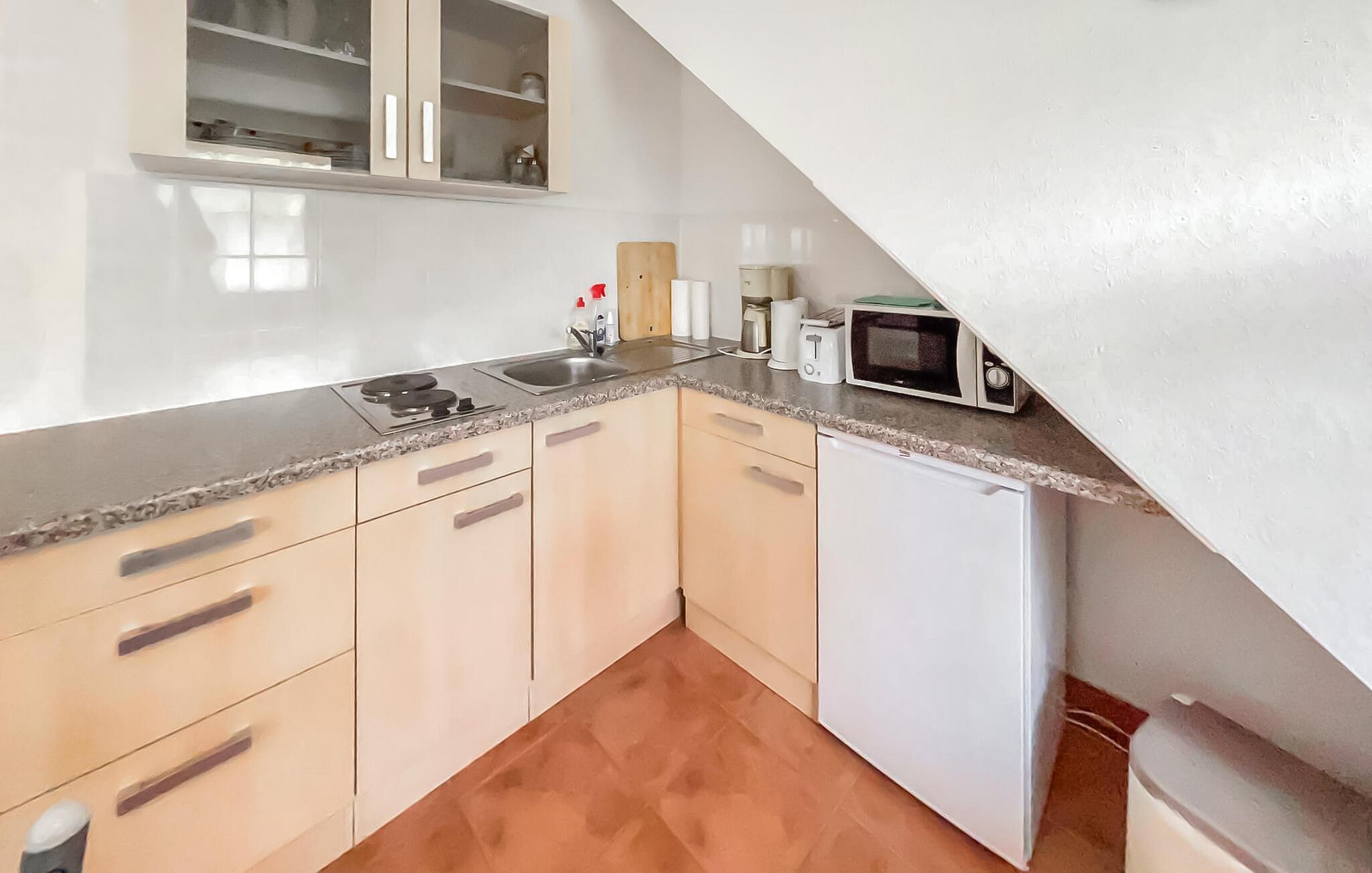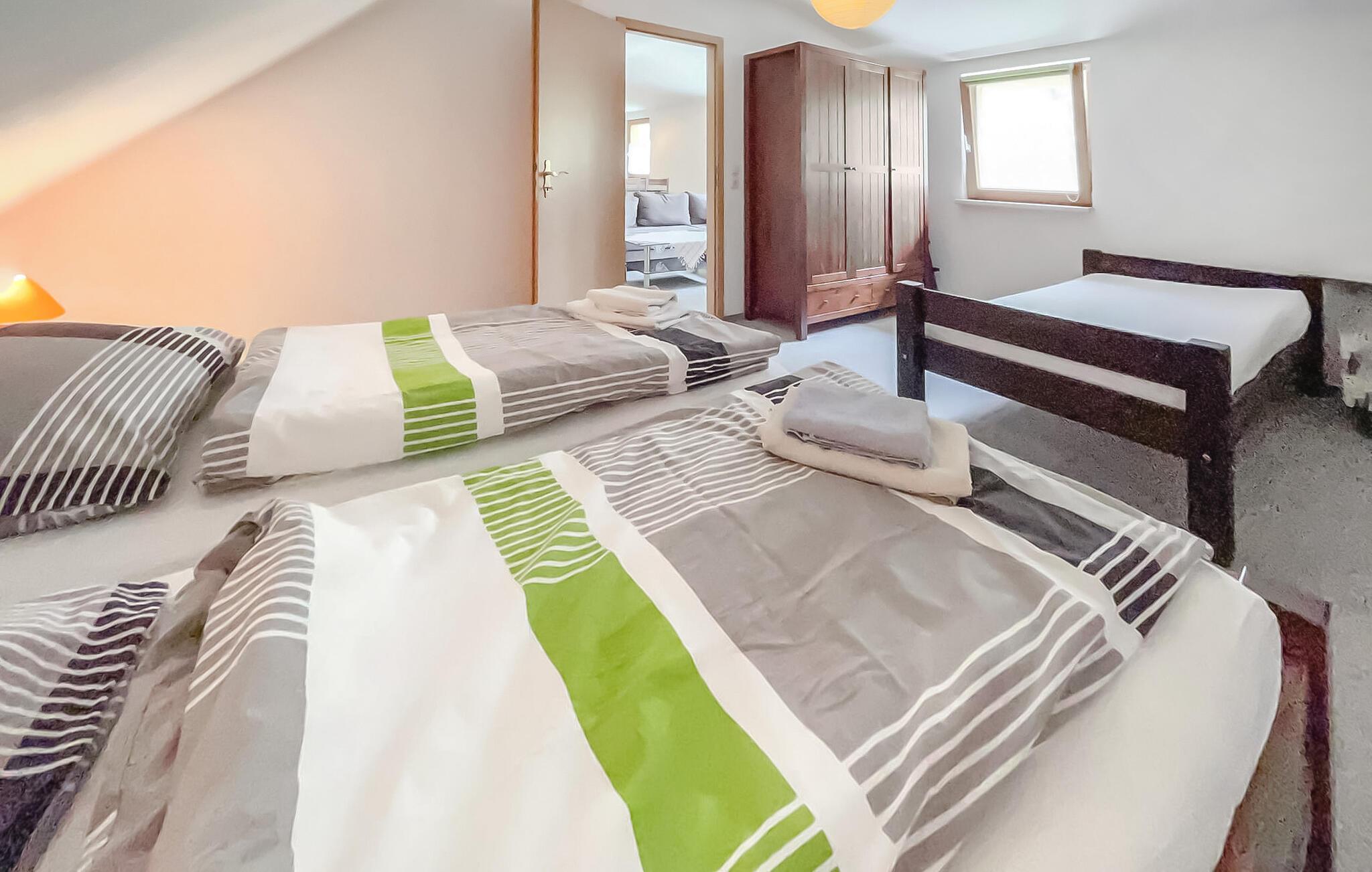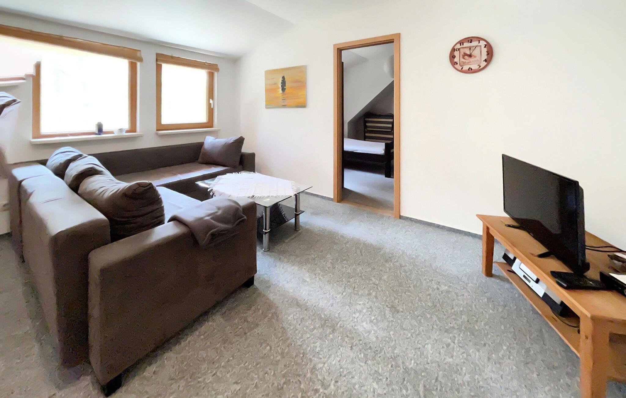 Ferieleiligheten med to rom ligger i 1. etasje. Den er utstyrt med stue (polstrede møbler, flatskjerm-TV, radio), soverom (dobbeltseng, seng), åpen kjøkkenkrok (elektriske kokeplater, kjøleskap, mikrobølgeovn, spisebord, diverse kjøkkenutstyr), bad med dusj/WC, sentralvarme og en møblert uteservering.
