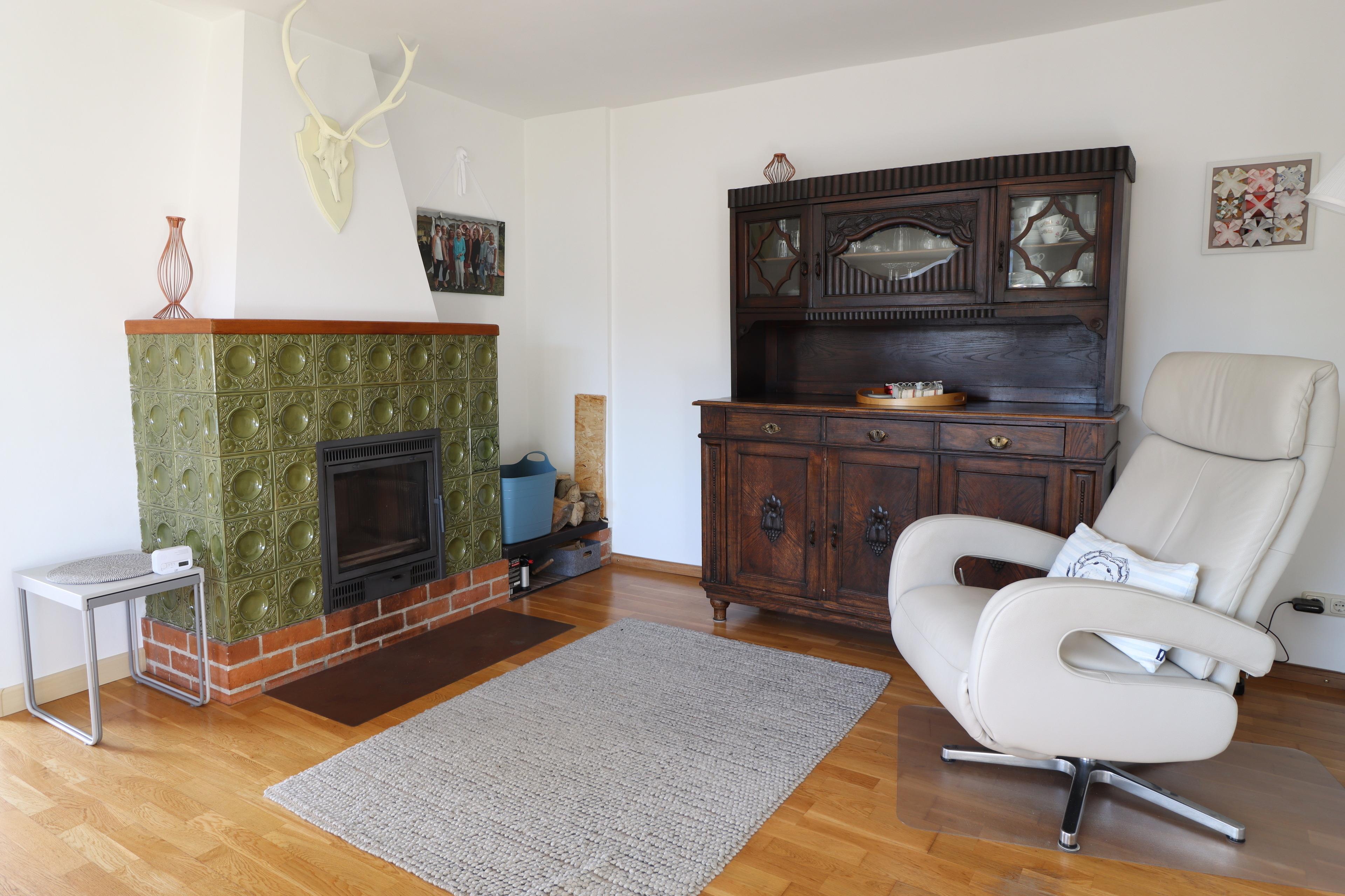 Im Erdgeschoss erwartet Sie ein offenes, großzügiges Wohnzimmer mit Kamin, das besonders an kühleren Tagen für eine warme und gemütliche Stimmung sorgt. Die helle, freundliche Küche ist voll ausgestattet und bietet alles, was man für den täglichen Komfort benötigt.