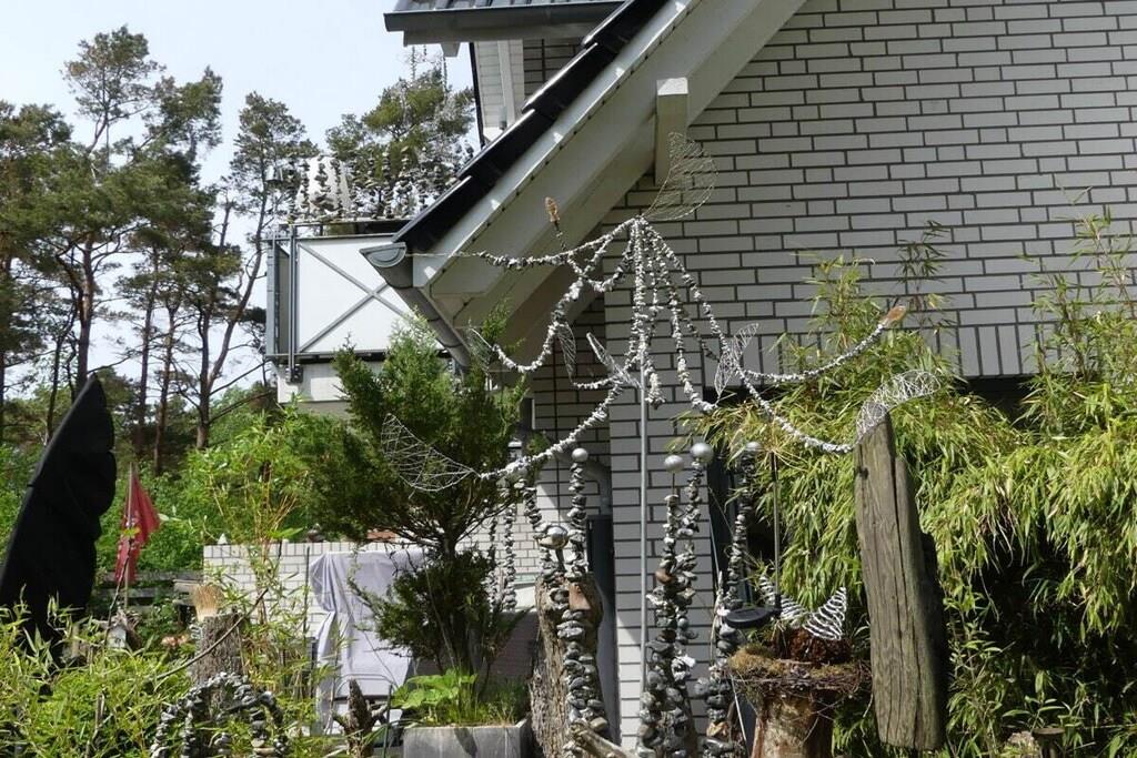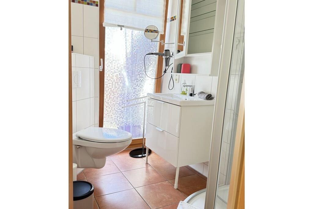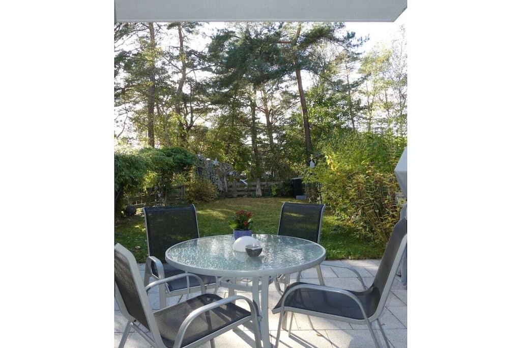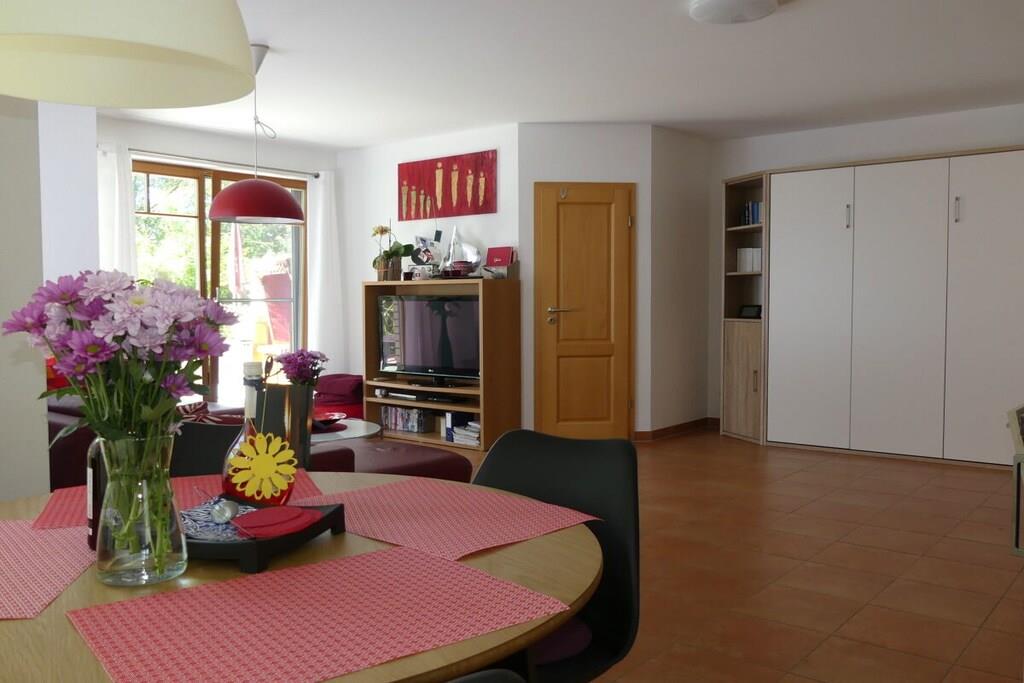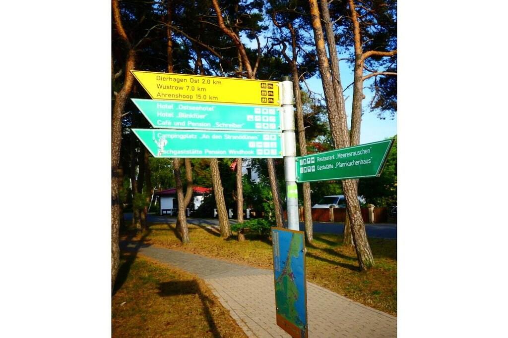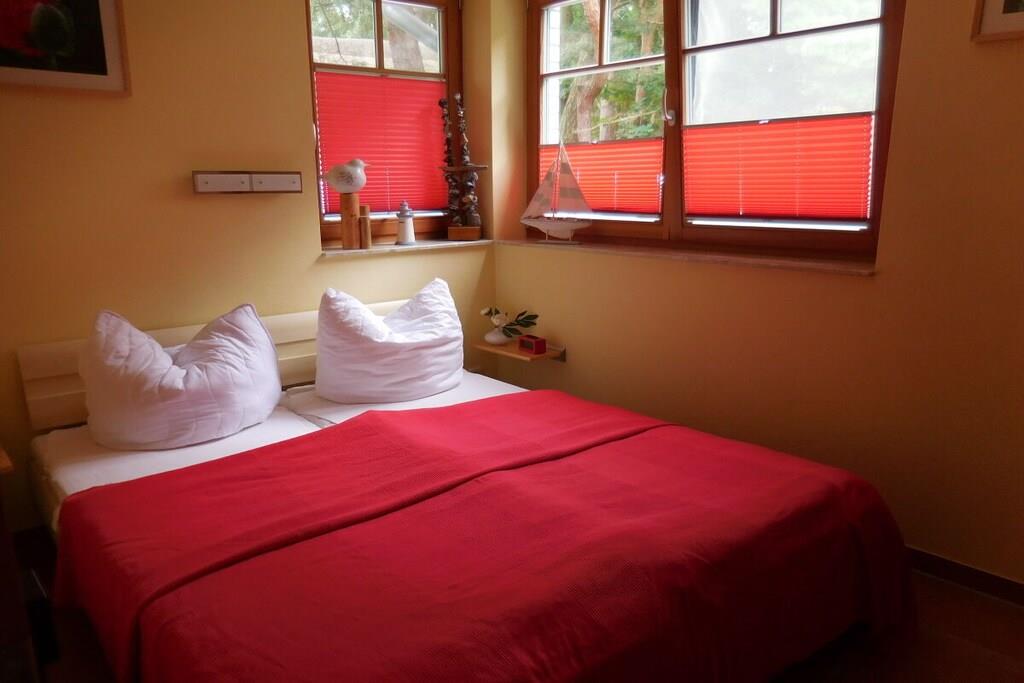 Arrive at any time of year and feel at home in Dierhagen-Strand. Due to its SW orientation, Dünennest 2 is in the sun all day. The apartment has a living-dining area with an open, well-equipped kitchen. A bedroom with a double bed 200x160 and a second sleeping area in the living room in a wall-folding bed 200x160. The apartment has two terraces, one of which is covered, and a garden. A high chair as well as games and art supplies are waiting for the little ones. 100 meters through the wild, romantic coastal forest and you are on the kilometer-long sandy beach. A beach tent, windbreak and beach chairs are on site. Two island bicycles are also available. A patio heater is available for cool evenings.