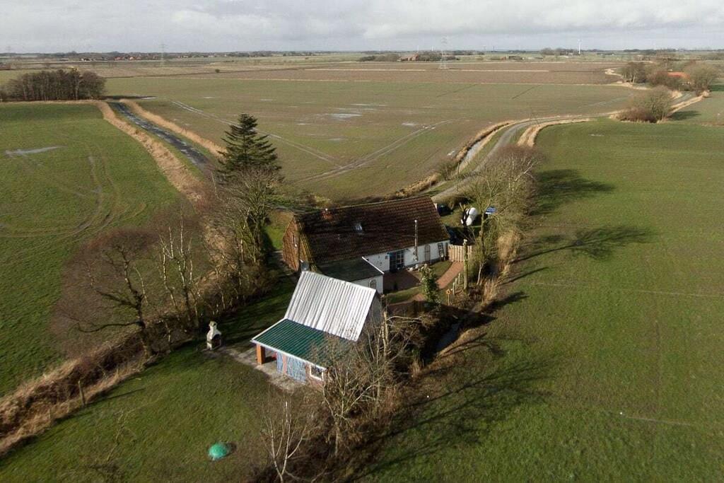 Gemütlich eingerichtetes Ferienhaus in Ostfriesland in wunderschöner Lage zwischen Feldern und Wiesen. Eine Wohnstube mit Kaminofen, 4 Schlafzimmer, eine Wohnküche mit Eßplatz für 6 Personen sowie 2 Badezimmer mit insgesamt 140 m² Wohnfläche sorgen für puren Urlaub. Im Erdgeschoss finden Sie die Wohnküche, ein Wohn-/ Esszimmer mit Ausgang zur Gartenterrasse, zwei Schlafräume mit Doppelbetten, einen Hauswirtschaftsraum, ein Bad mit Wanne und Dusche und ein Gäste WC Im Obergeschoss befindet sich ein großes Schlaf/Kinderzimmer und ein Duschbad. Bei Bedarf ist ein zweites Schlafzimmer im OG möglich. Kinder und Hunde können sich auf dem 1800 qm großen eingezäunten Grundstück nach Lust und Laune austoben. Diverse Spiel- und Klettermöglichkeiten sind vorhanden.