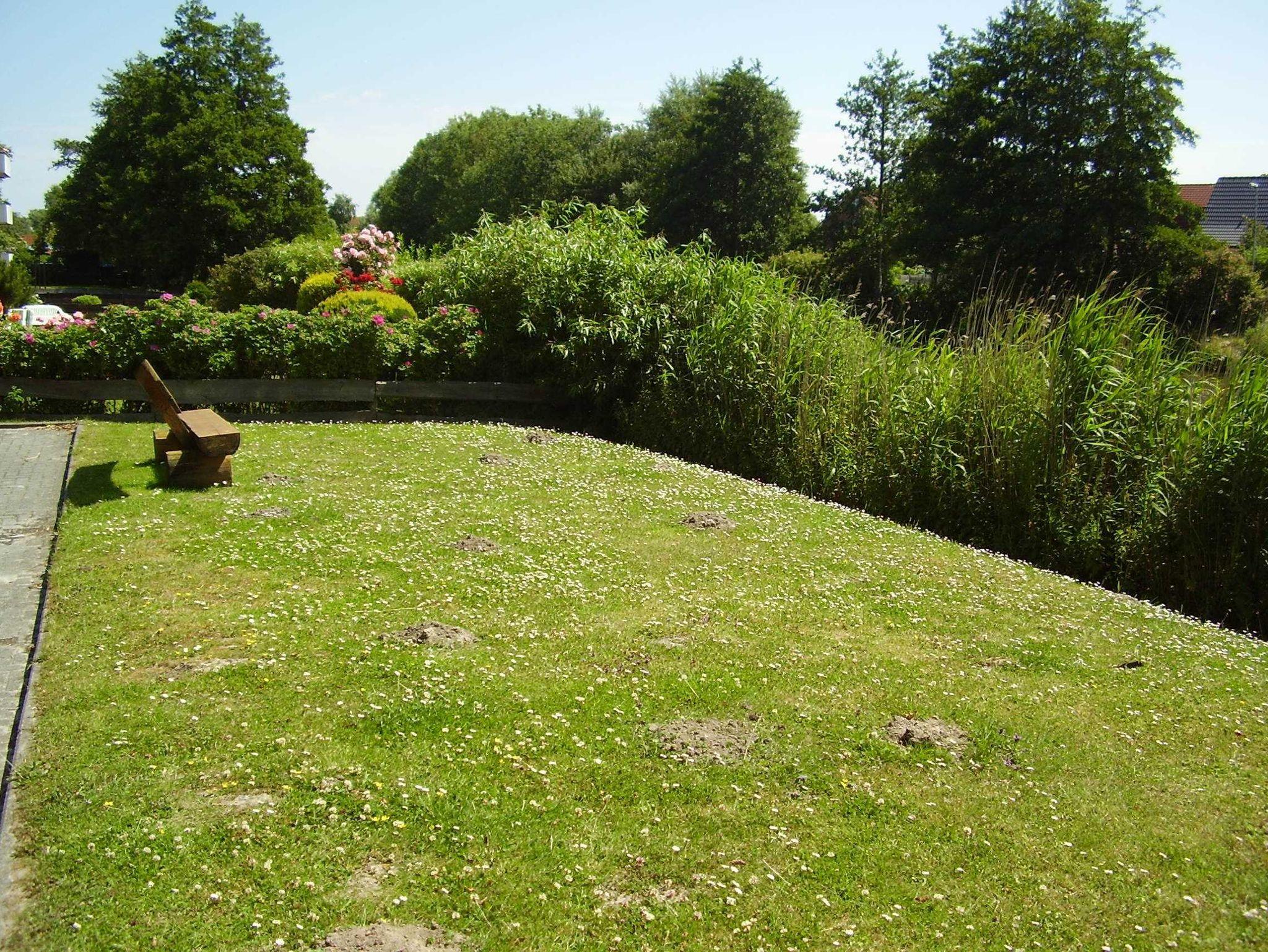 Erdgeschoss Ferienwohnung mit überdachter Terrasse und Wiesengrundstück, direkt am Siel im Nordseebad Dornumersiel, für bis zu 3 Personen und Baby. Fenster mit Rollläden. Angeln direkt vom Grundstück aus möglich. Hund erlaubt.
