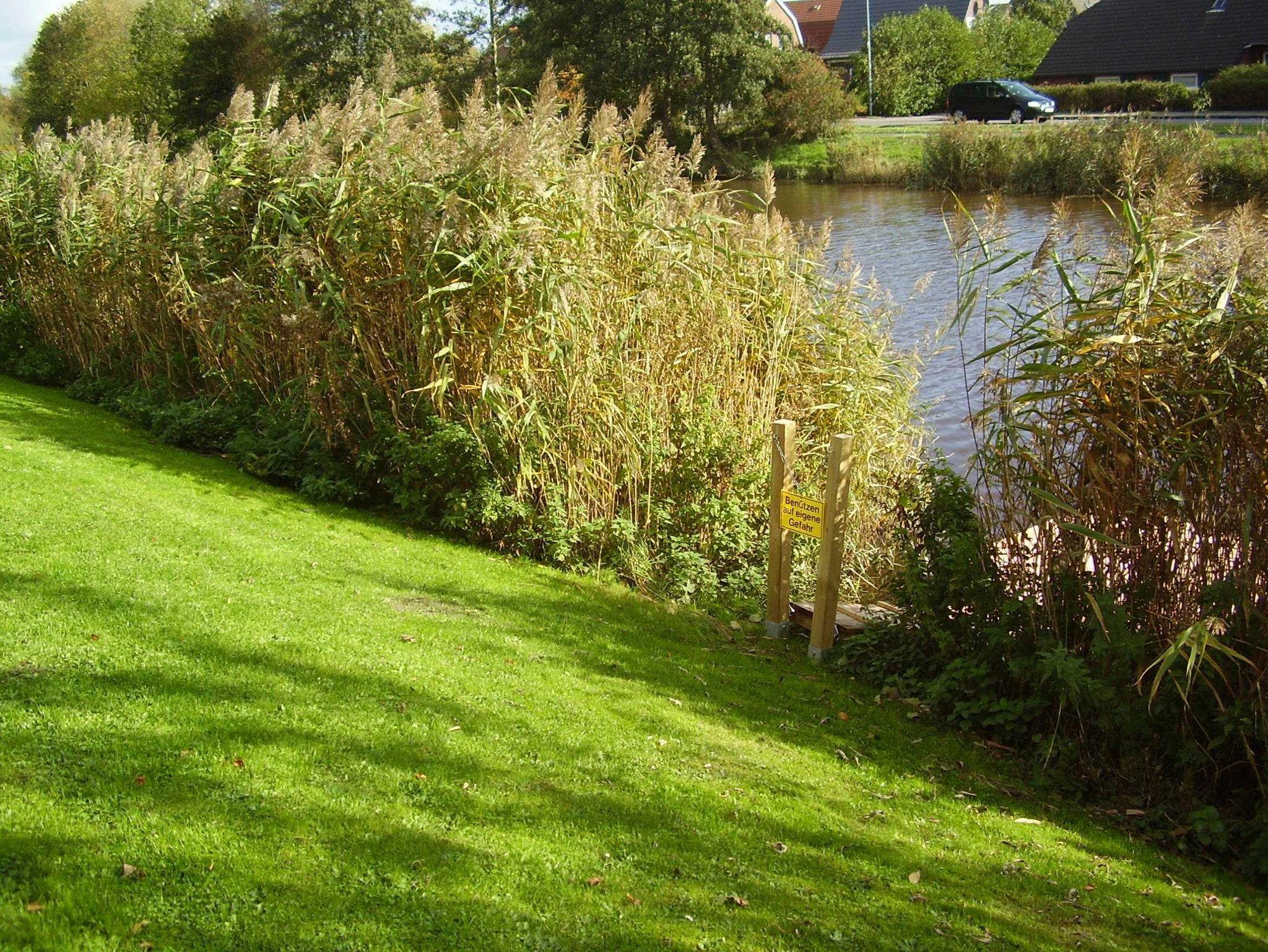 Überdachte Terrasse und Wiese in Südlage direkt zum Siel. Angeln vom Grundstück aus möglich.