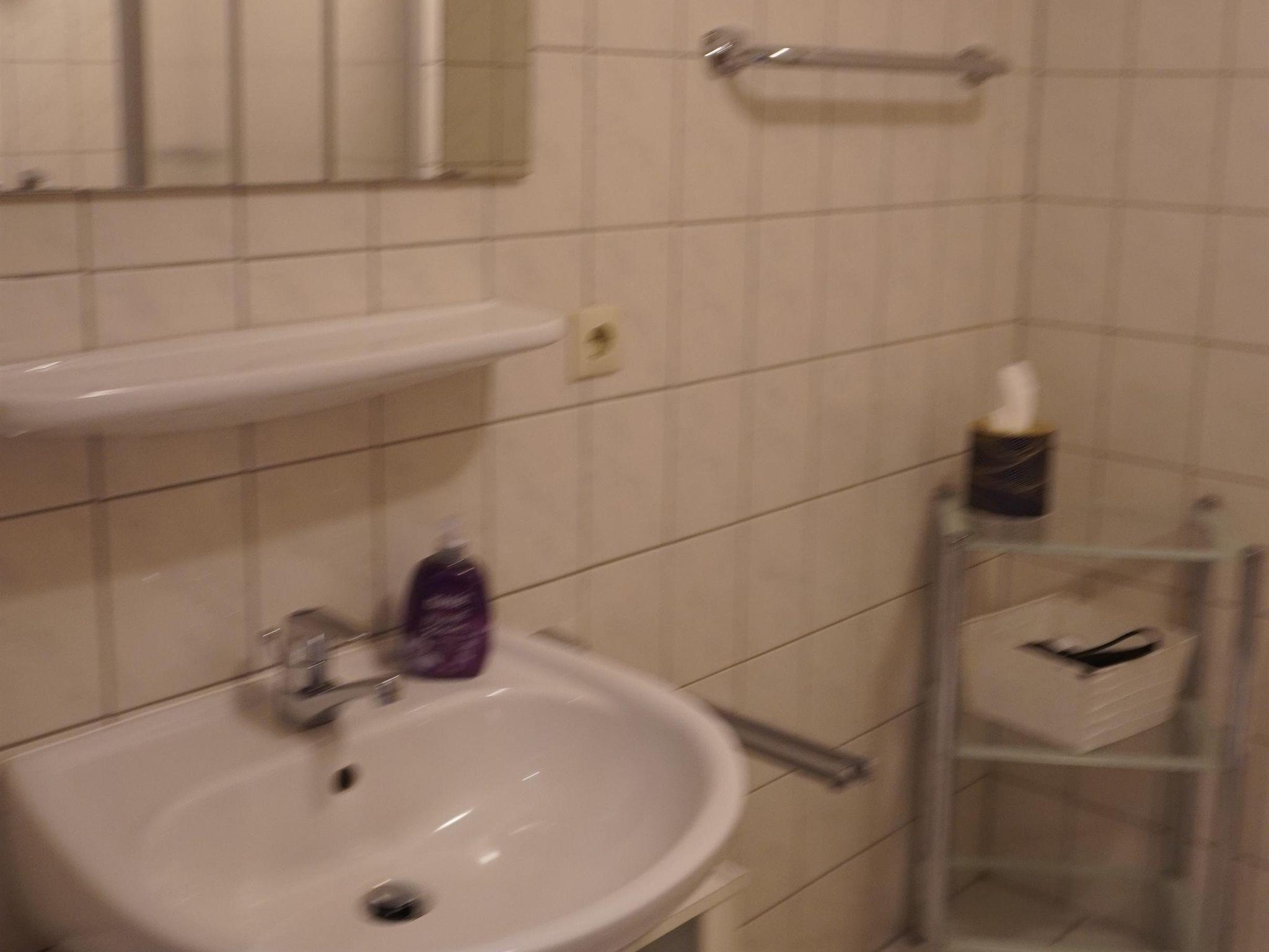Im Bad befindet sich eine Dusche mit Sitzstuhl sowie das WC und Waschbecken.