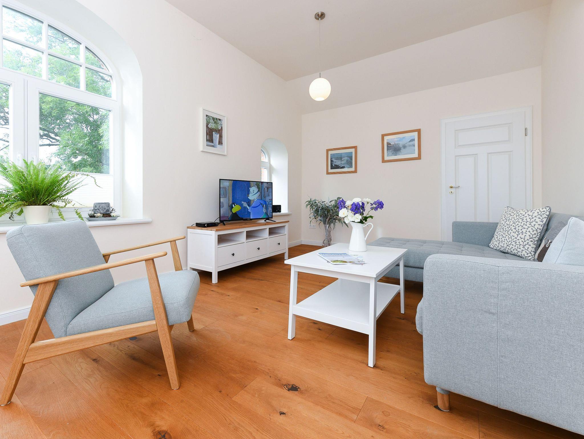 Größe ca. 115 Quadratmeter, Wohnzimmer, zweites Wohnzimmer, Küche mit räumlich abgeteiltem Esszimmer, Küche mit geräumiger Esstisch-Gruppe, Schlafzimmer, zweites separates Schlafzimmer, drittes separates Schlafzimmer, viertes separates Schlafzimmer, Badezimmer mit Badewanne, Dusche, Waschtisch und WC, zweites Badezimmer mit Badewanne, Dusche, Waschtisch und WC, Erdgeschoss, Obergeschoss, zwei Terrassen, Parkplatz am Haus, Koffer-/Abstellraum, Hauswirtschaftsraum, optimal für 2 bis 8 Personen und zusätzlich ein Kleinkind.