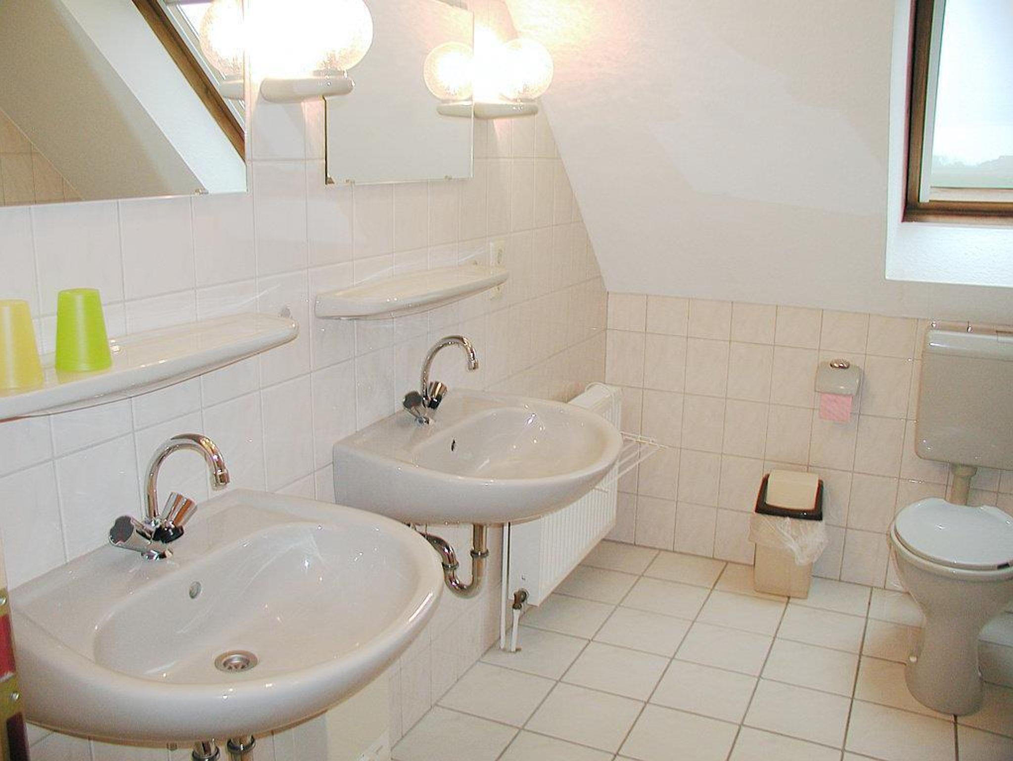 Es erwartet Sie im Erdgeschoss eine komplett eingerichtete Küche, welche offen zum Wohnbereich gestaltet ist, ein Schlafzimmer mit Doppelbett sowie ein Bad mit 2 Waschbecken, Dusche und WC. Im Obergeschoss werden Sie zwei weitere Schlafdomizile, mit jeweils einem Doppelbett ausgestattet, vorfinden. Ein zusätzliches Badezimmer mit 2 Wachbecken, Badewanne, Dusche und WC ist ebenfalls vorhanden. Für unsere kleinen Gäste bieten wir ein Kinderbett (bis 3 Jahre), Kinderhochstuhl sowie eine Wickelkommode an.