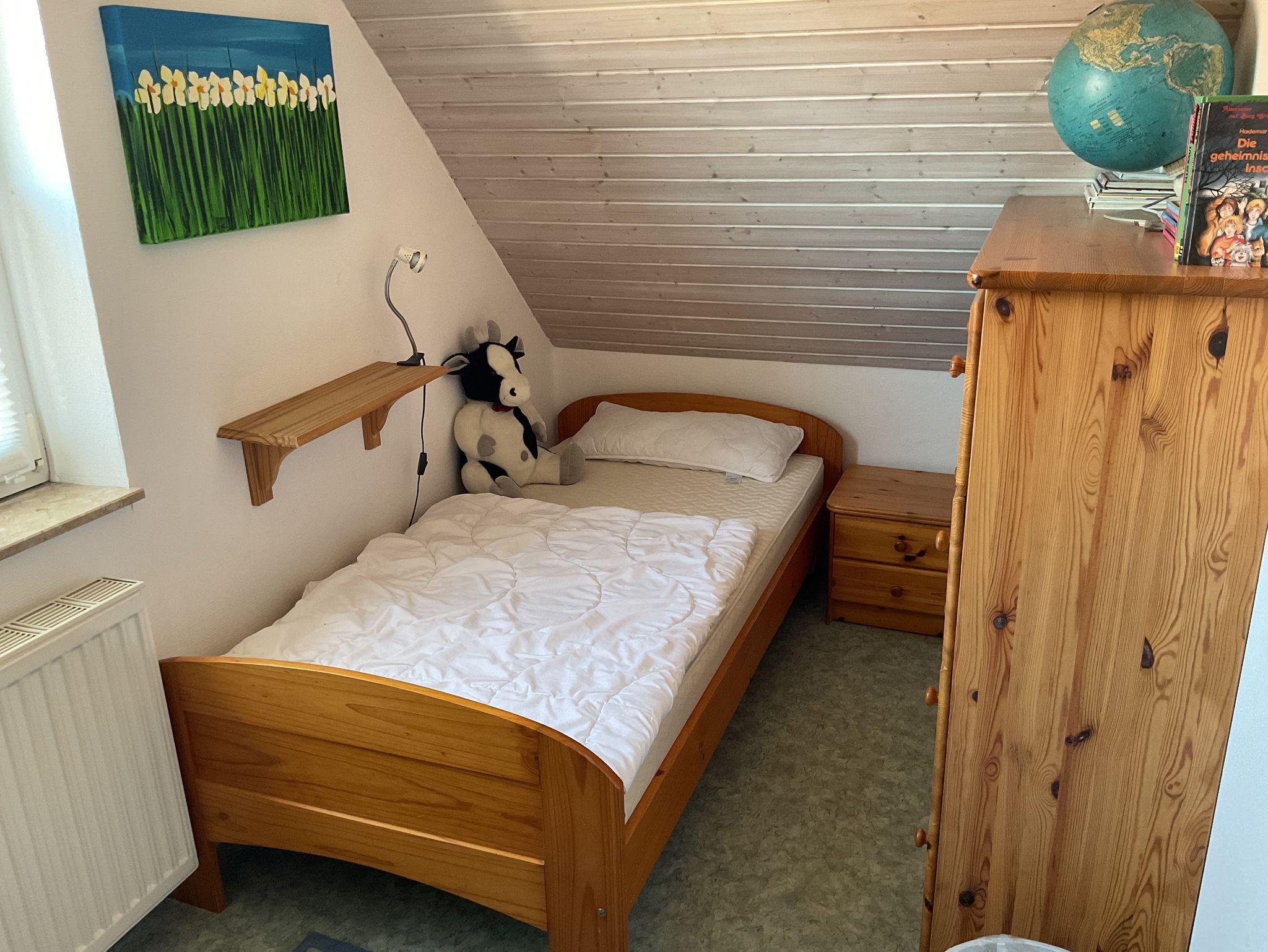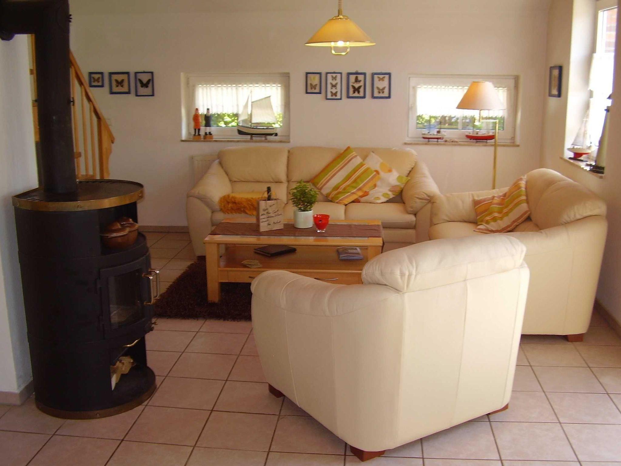 Freistehendes Friesenhaus mit Kaminofen auf einem komplett eingezäunten Grundstück mit Südterrasse und Grillplatz. Mit drei Schlafzimmer und zwei Badezimmer bietet es grosszügig Platz für bis zu sechs Personen und einem Kleinkind. Ein abschliessbares Gartenhaus steht zur Verfügung. Hund erlaubt.