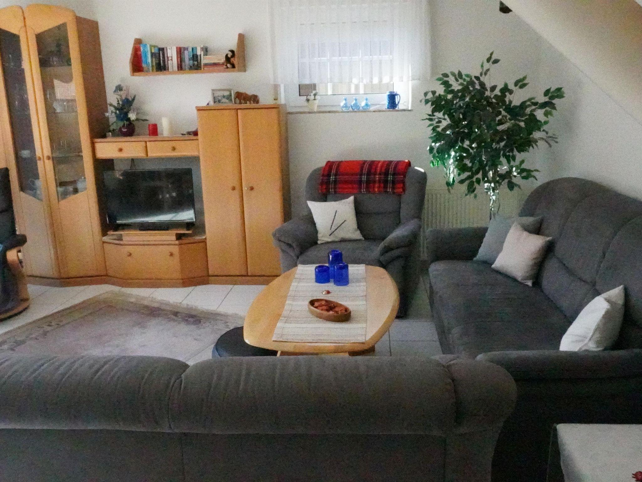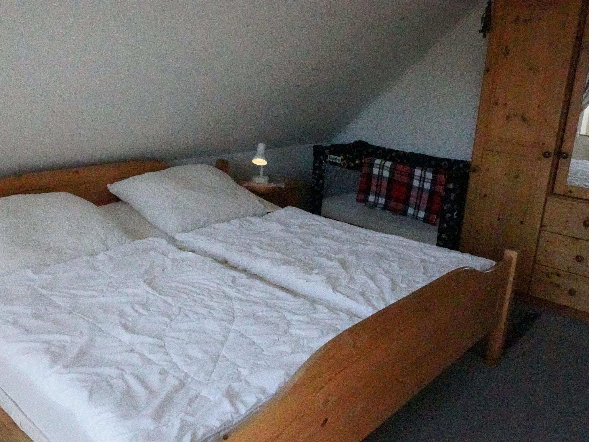 Es erwartet Sie ein möbliertes Wohn- und Esszimmer in Erlenholz, die Fußböden sind hell gefliest. Ein Farb-Sat-TV, eine Stereoanlage mit CD/MC sowie kostenloses Internet über W-LAN und Telefon mit Festnetzflat vervollständigen das Wohnzimmer. Des Weiteren werden Sie eine komplett eingerichtete Küche mit Umluftbackofen, Spülmaschine und Mikrowelle vorfinden. Die Schlafdomizile, eins mit Doppelbett (Matrazen sind 90x200 cm) und eins mit zwei Einzelbetten(90x200 cm) und in Kiefer-Natur gehalten. Hier sind die Fußböden mit Teppichboden ausgelegt. Das Tageslichtbad ist mit Dusche und WC sowie einer Waschmaschine ausgestattet. Ein separates Gäste-WC steht Ihnen ebenfalls zur Verfügung. Kinderbett und Hochstuhl sind für unsere kleinen Gäste vorhanden.