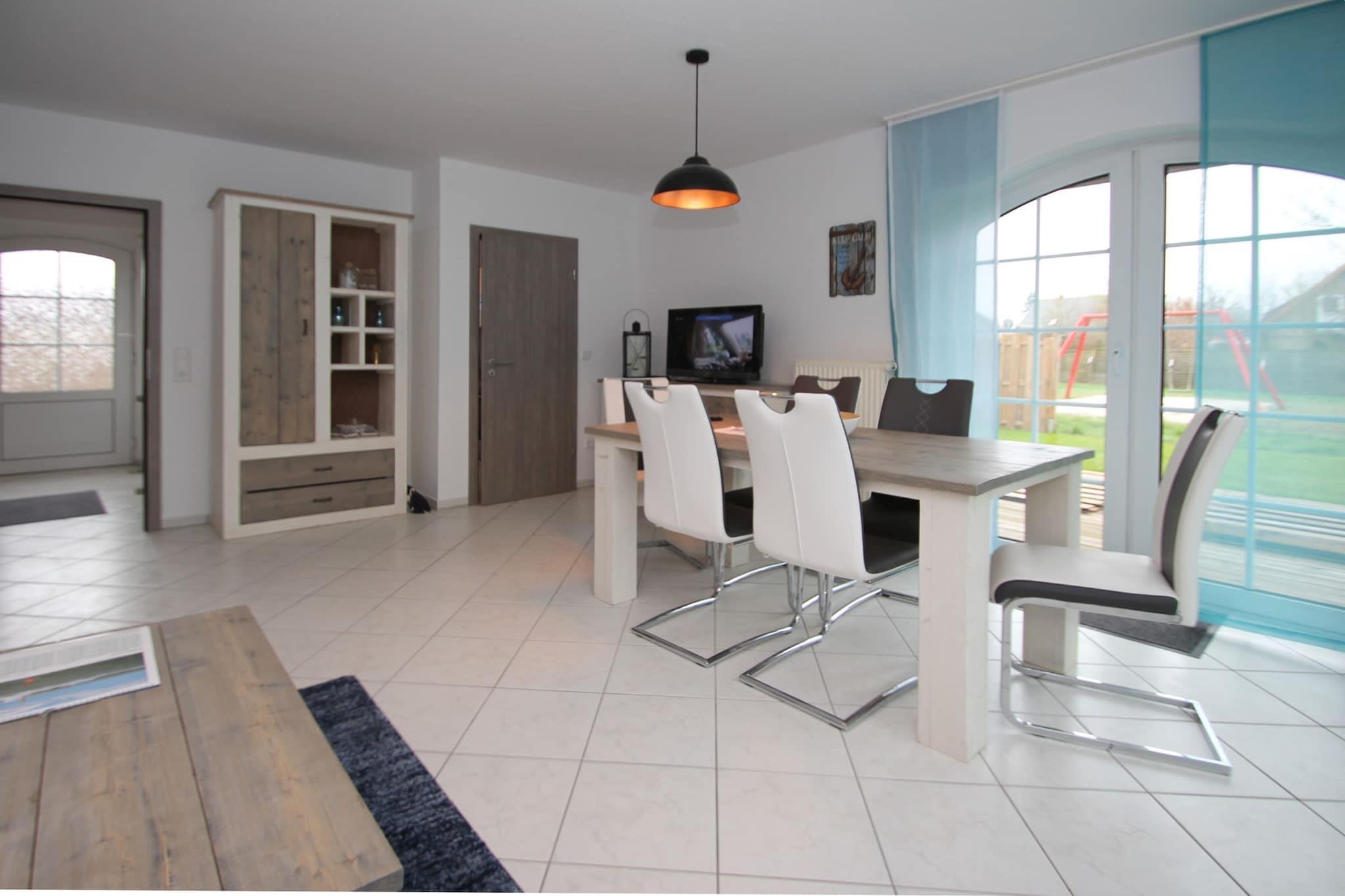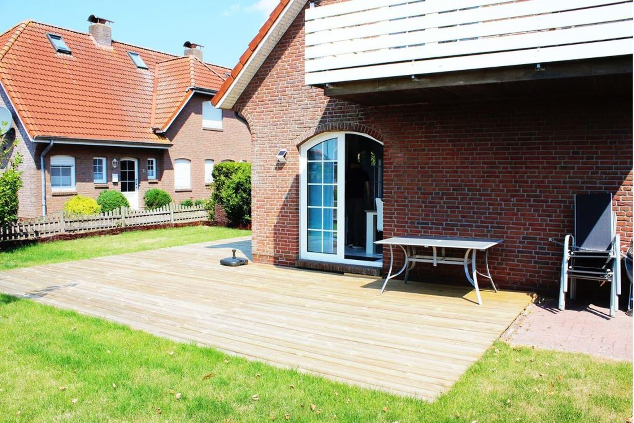 Koselig og meget godt utstyrt feriehus med vakker, inngjerdet hage og terrasse. Din trofaste firbeinte venn er også hjertelig velkommen her! Tre soverom har plass til seks personer, moderne stue med peis og velutstyrt kjøkken sørger for bekymringsløse timer. Rett ved siden av huset ligger en lekeplass hvor de små gjestene kan slippe ut damp. Dornum-distriktet i Schwittersum ligger litt utenfor Dornum og lover en fredelig ferietid. Det er ikke langt til Nordsjøen og de omkringliggende byene, så dette er et ideelt utgangspunkt for å utforske regionen. Detaljer: WLAN Aktiviteter i nærheten: Området rundt Dornum er preget av typiske aktiviteter i Nordsjøen. Dornumersiel ligger rett ved havet med omtrent 70 000 kvadratmeter sandstrand, mange turistfasiliteter, restauranter, butikker og kafeer. Gå gjennom det fantastiske tidevannsflate landskapet, som er erklært som et naturlig verdensarvsted, eller kystinnlandet, som er preget av spøkelse og myr. Aktiviteter som sykling, sandvolleyball, kitesurfing, fiske eller et besøk i det solvarmede sjøvannsbassenget er bare noen av de mange tilbudene for sportsentusiaster. Regionen tilbyr alle gjester et bredt spekter av fritidsaktiviteter. Enten som par eller med familien: alle vil finne den rette ferieaktiviteten her. Tips til utflukter i Øst-Frisia: temuseet og Ludgeri-kirken i nord, fergehavnen i Norddeich eller fiskerlandsbyen Greetsiel. Kunstgalleriet i Emden eller Sielhafenmuseum i Carolinensiel er også verdt et besøk, de som elsker maritime bør planlegge en dagstur til østfrisiske øyene utenfor kysten, besøk forseglingen banker med skip eller dra ut i Nordsjøen for havfiske Ikke egnet for bevegelseshemmede