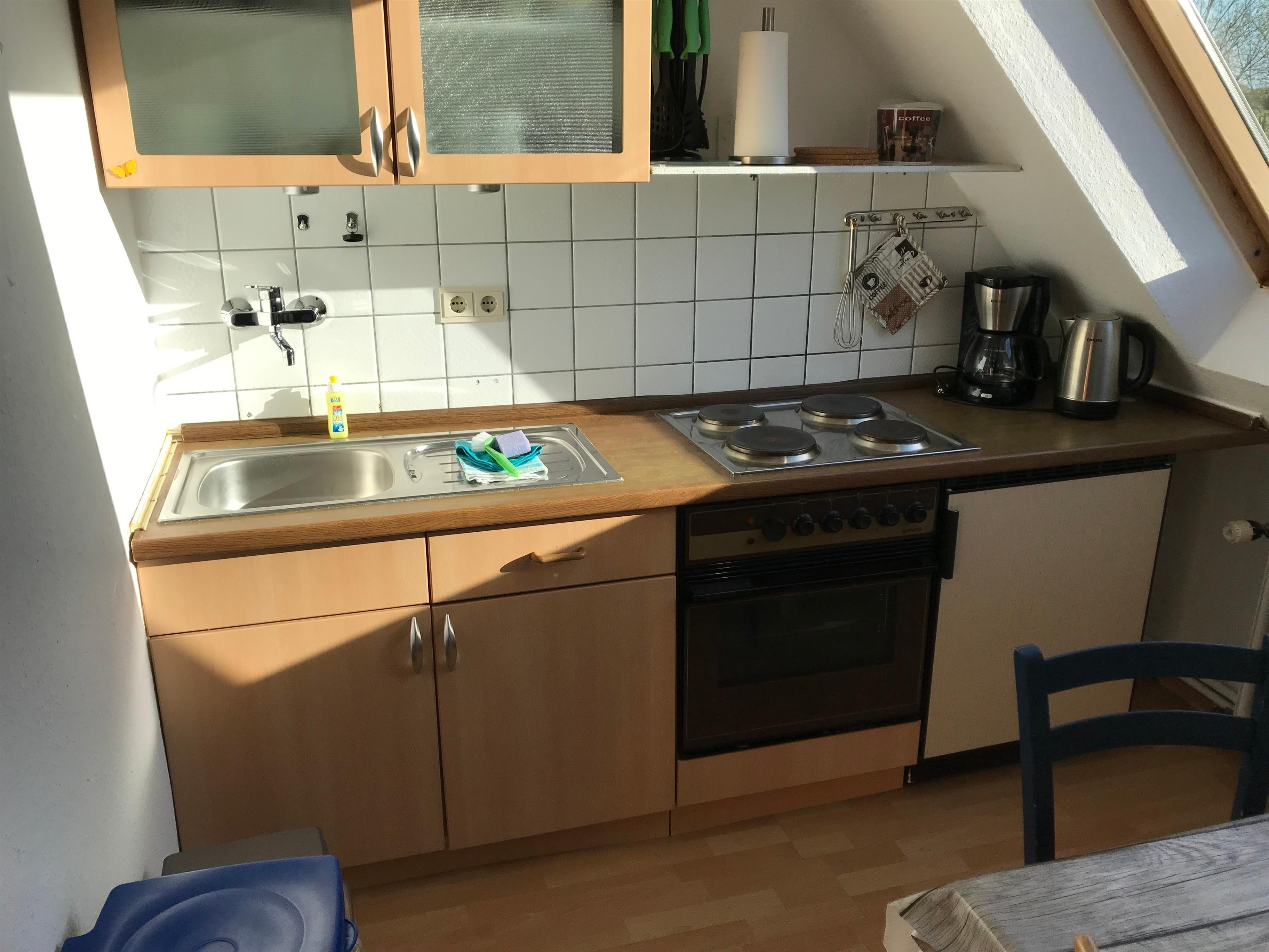 Diese 70 m2 große Ferienwohnung hat 7 Räume, bestehend aus einem Wohnzimmer, einer Küche, drei Schlafzimmern, Flur und einem Badezimmer. Das Wohnzimmer hat ein Sofa, einen Couchtisch und einen SAT-Fernseher. In der Küche steht ein Eßtisch mit 4 Stühlen und ist mit Wasserkocher, Kaffeemaschine, Handmixer, Herd, Backofen, Toaster, Kühlschrank, Geschirr, Besteck, Pfannen und Töpfen ausgestattet.