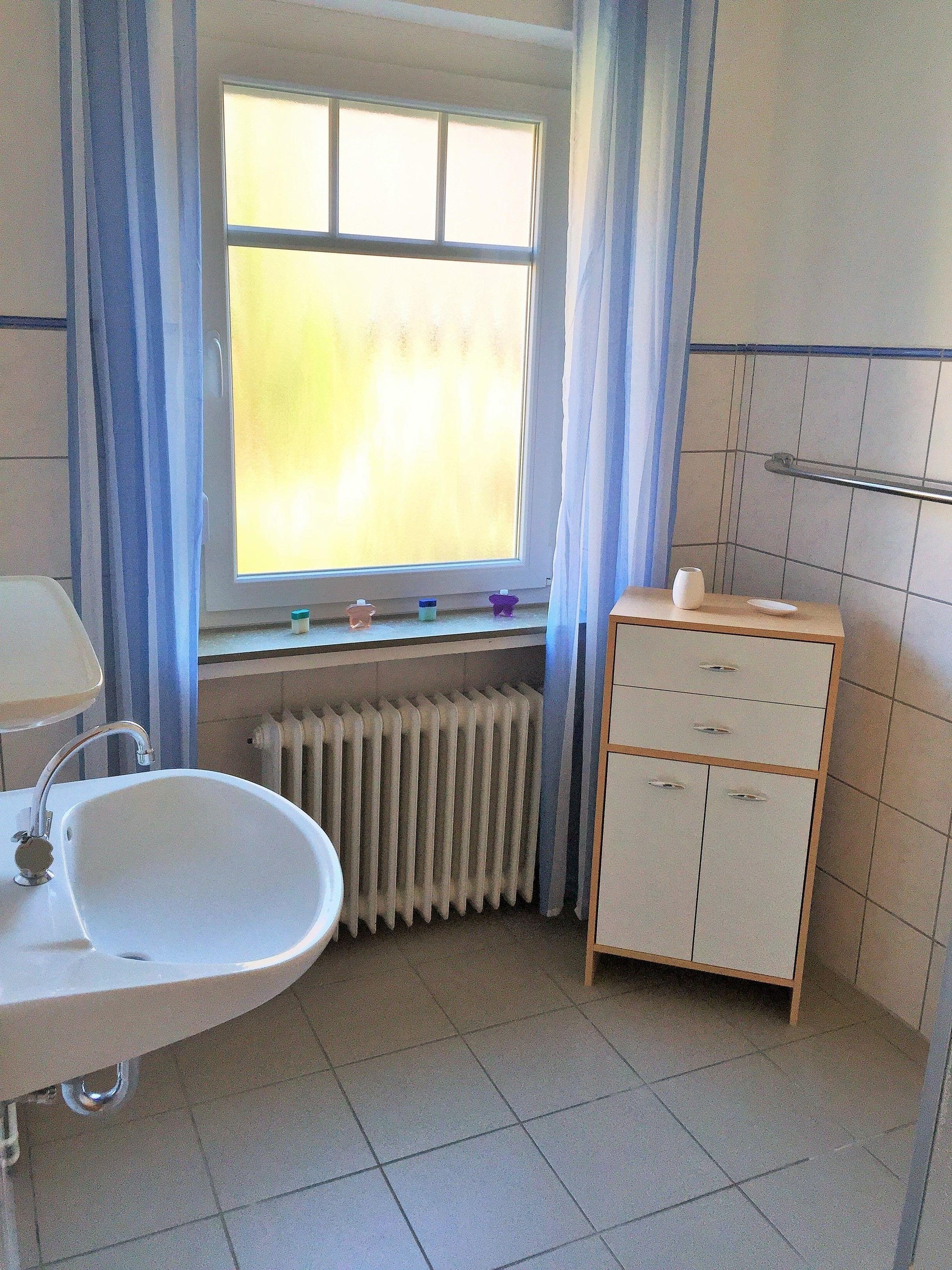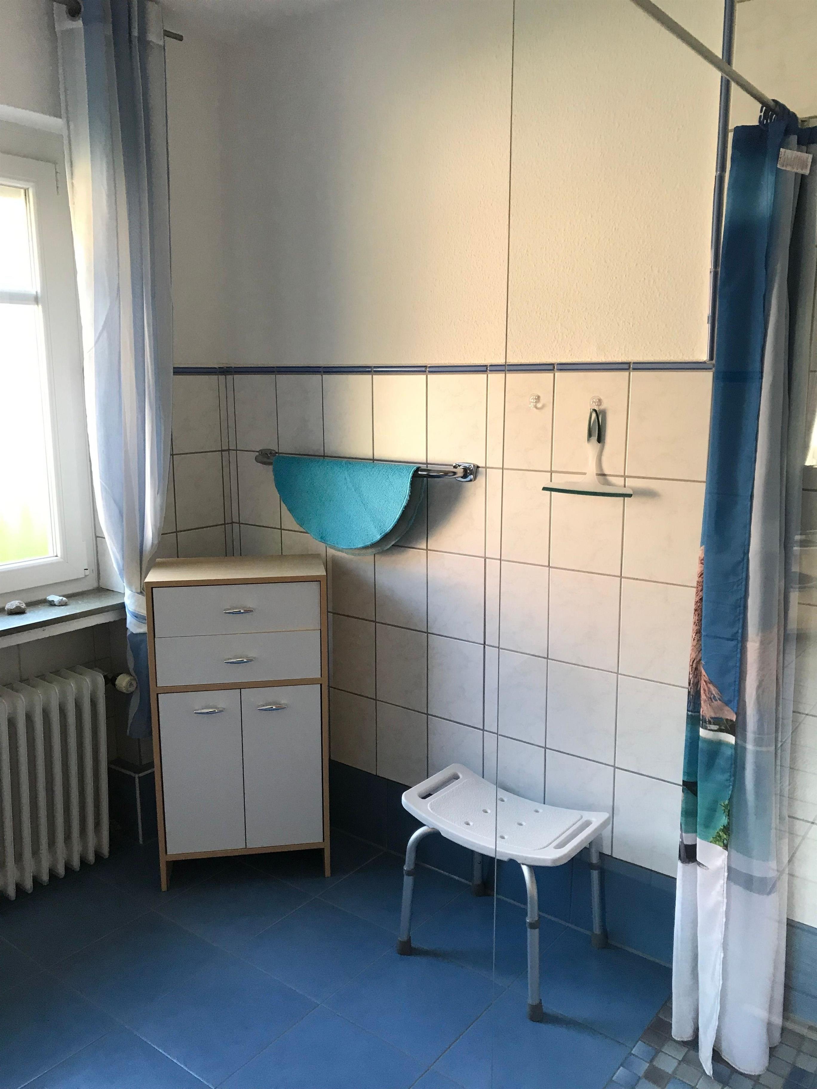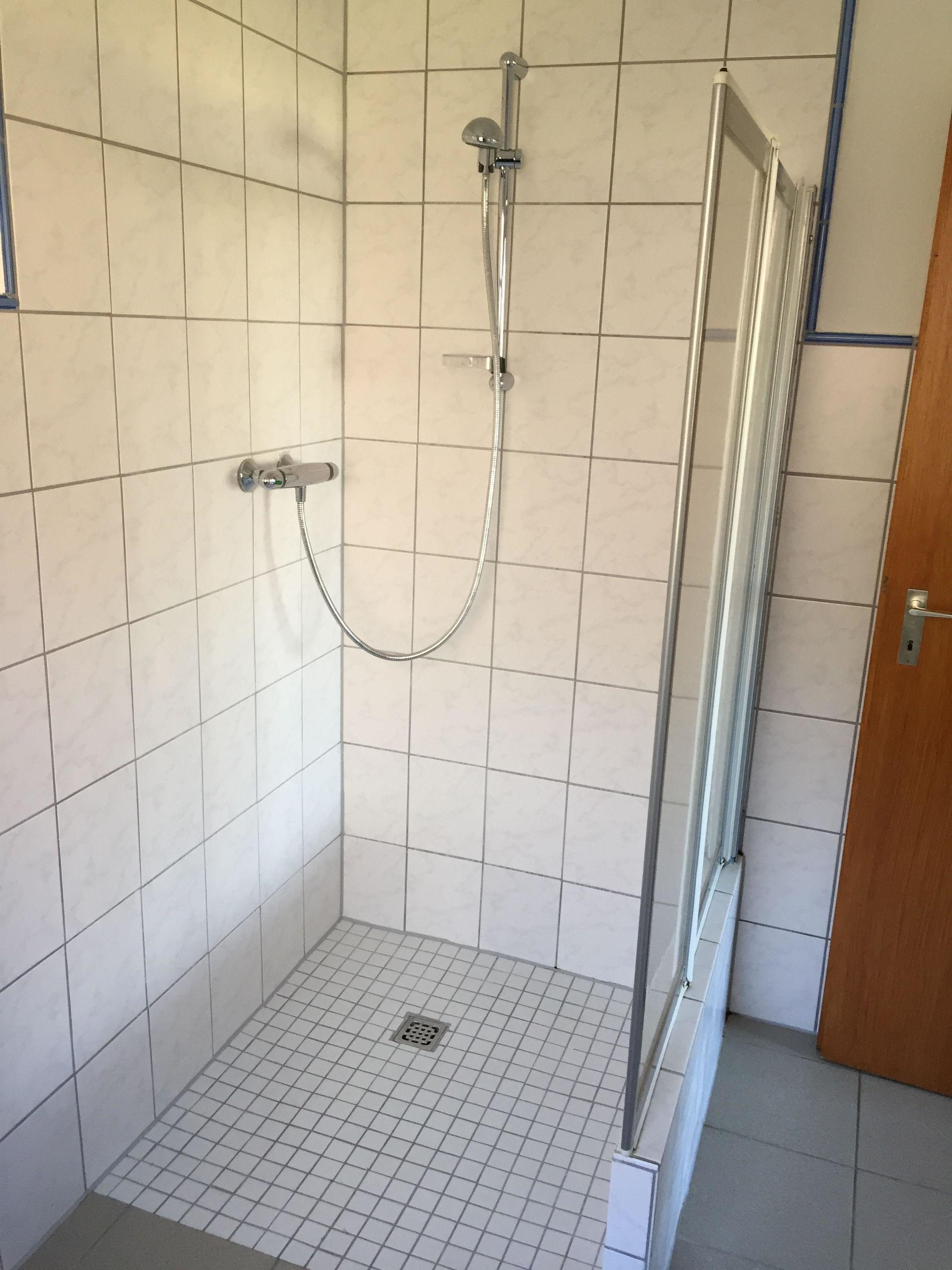 Das Badezimmer ist mit einer Dusche ausgestattet.